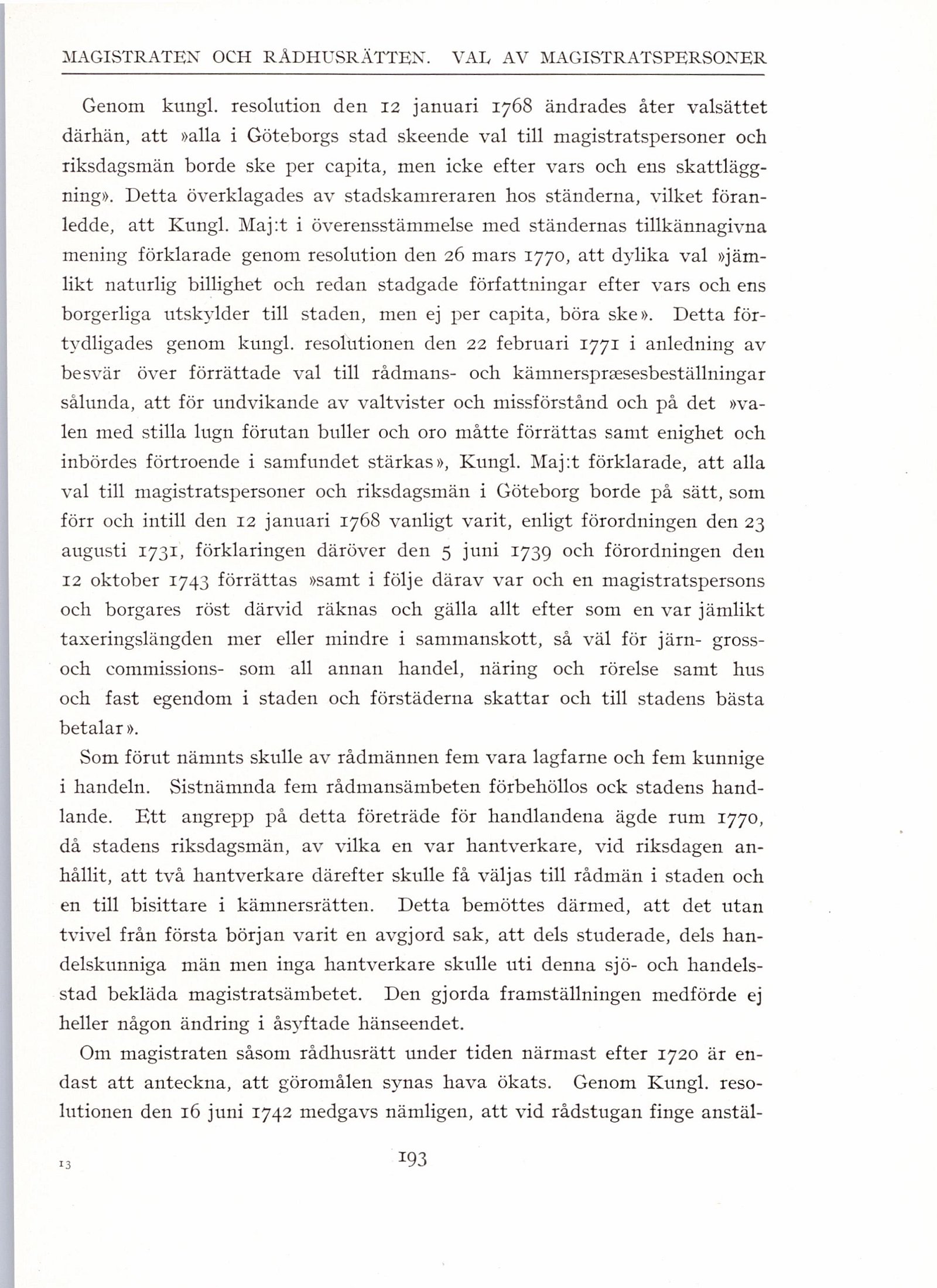 Om magistraten såsom rådhusrätt under tiden närmast efter 1720 är