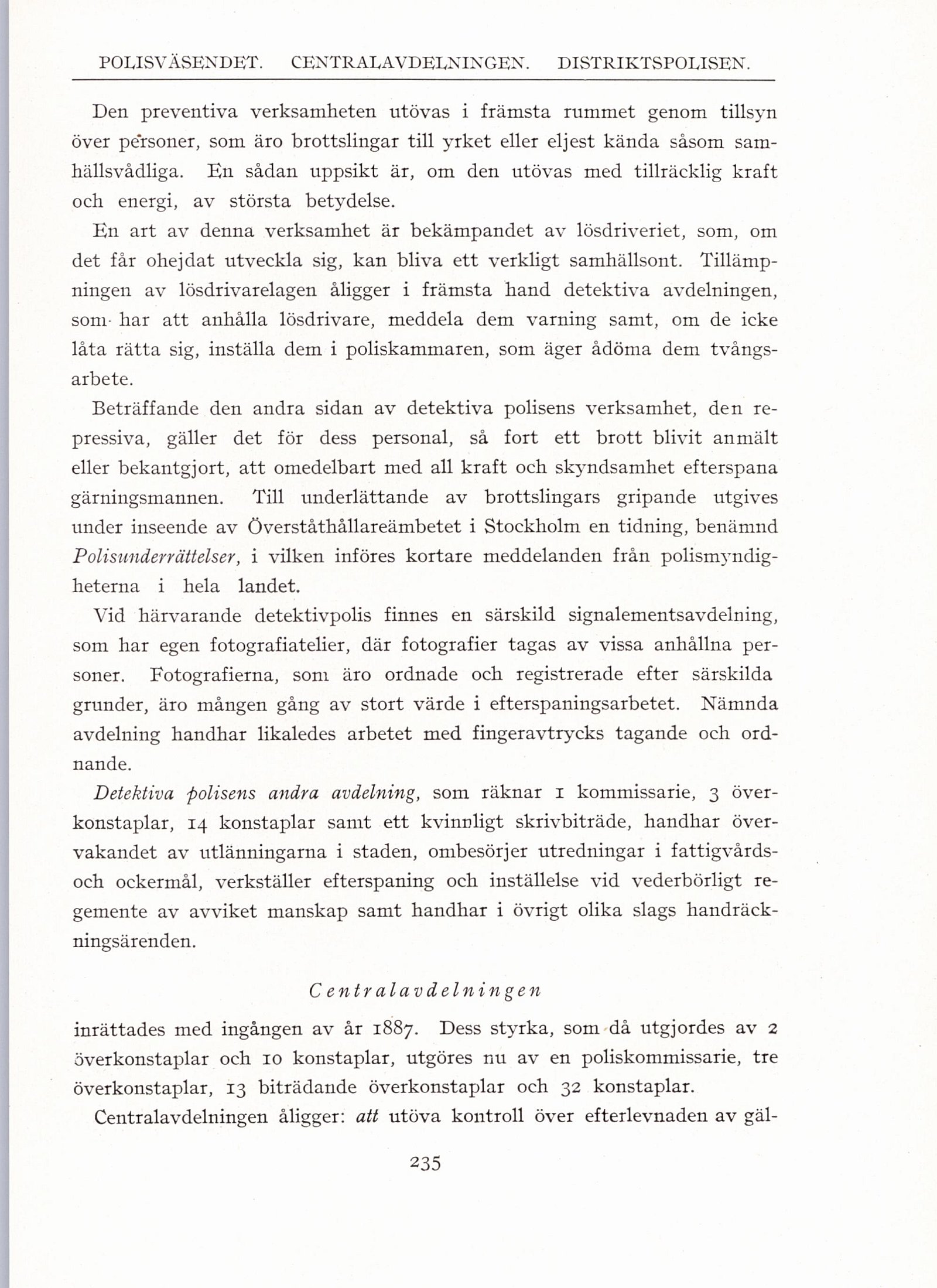 överkonstaplar, 14 konstaplar samt ett kvinnligt skrivbiträde, handhar