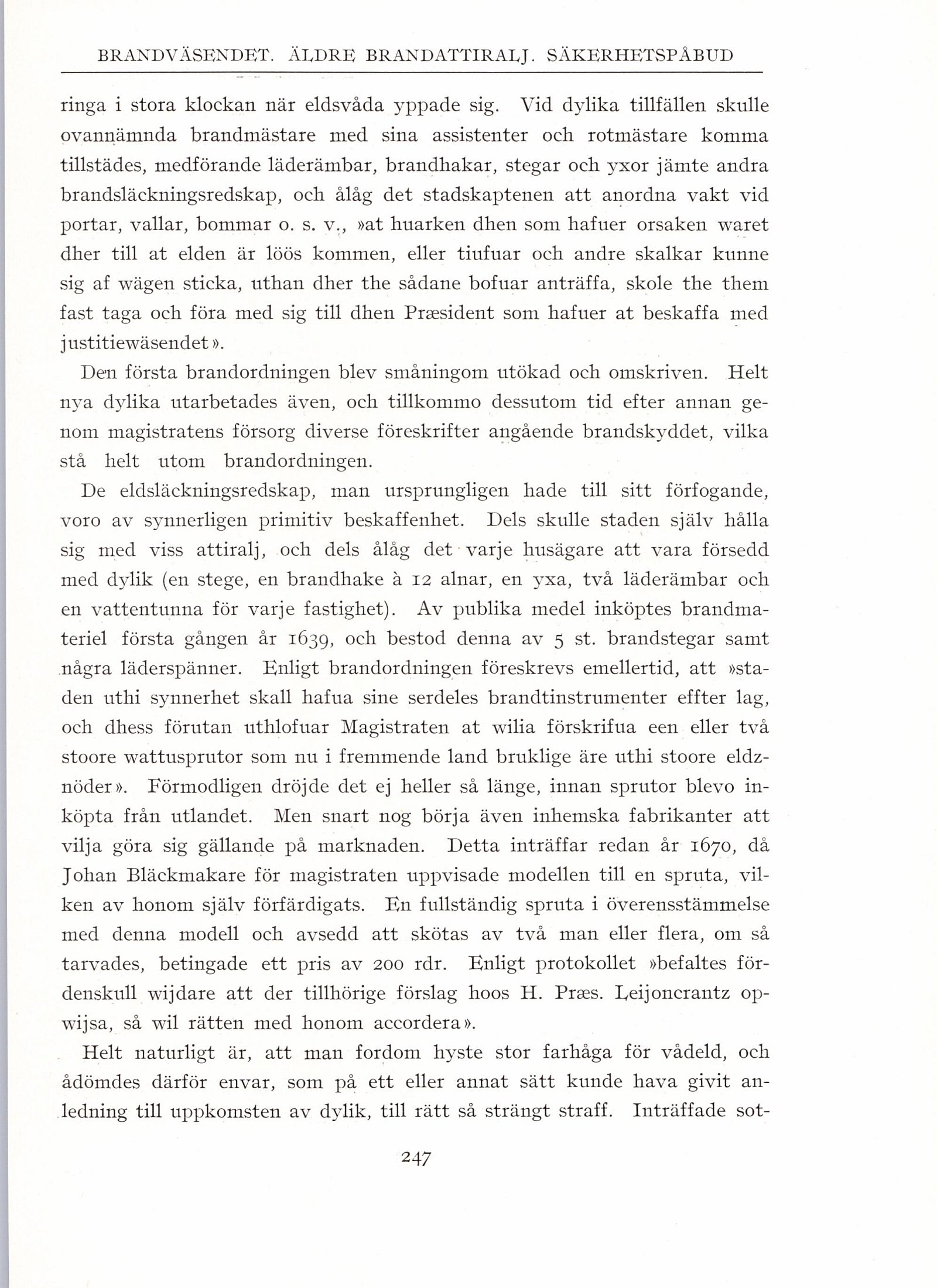 några läderspänner. Enligt brandordningen föreskrevs emellertid, att