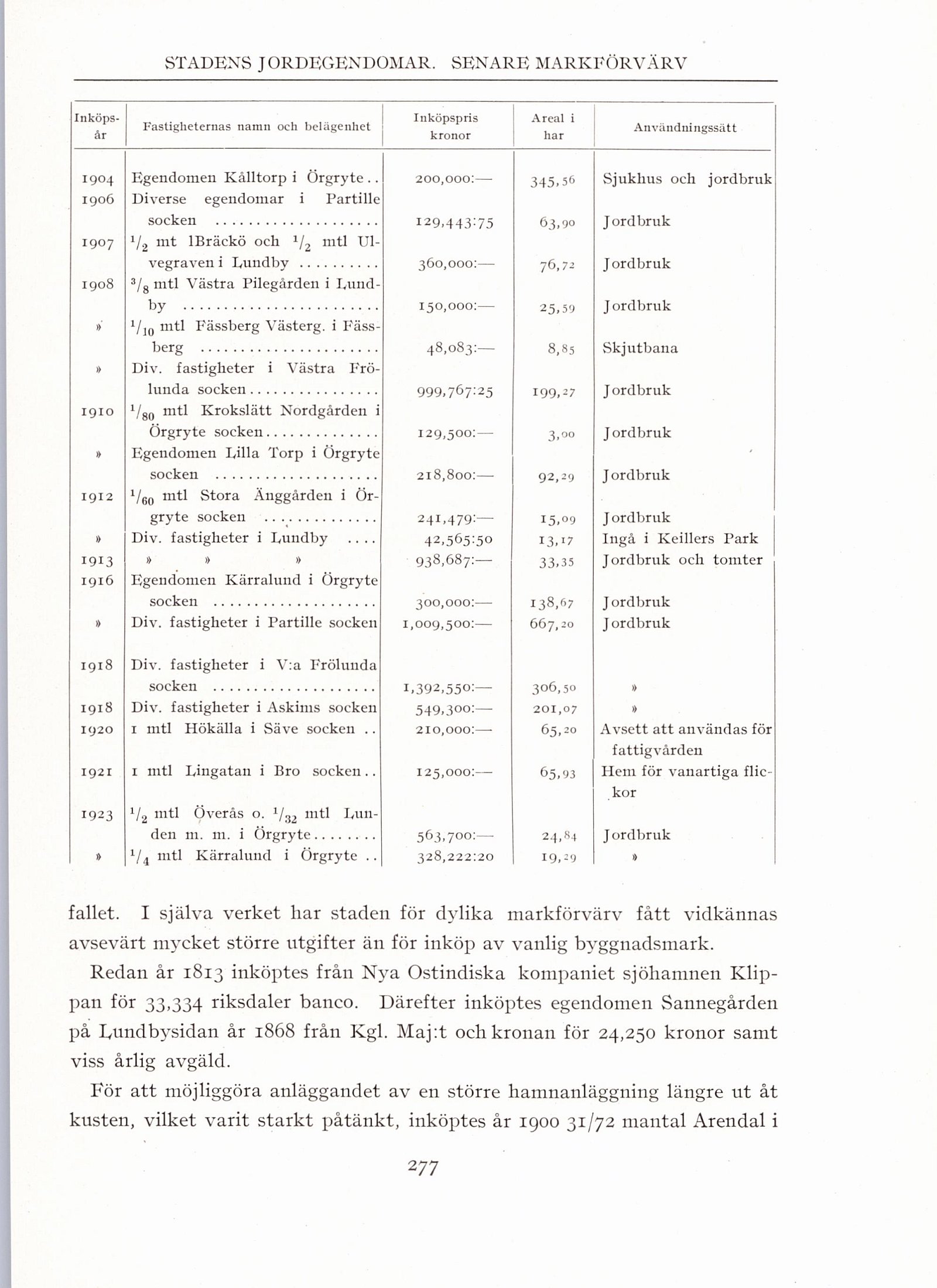 1904 Egendomen Kålltorp i Örgryte .. 200,0001— 345.56 Sjukhus och jordbruk