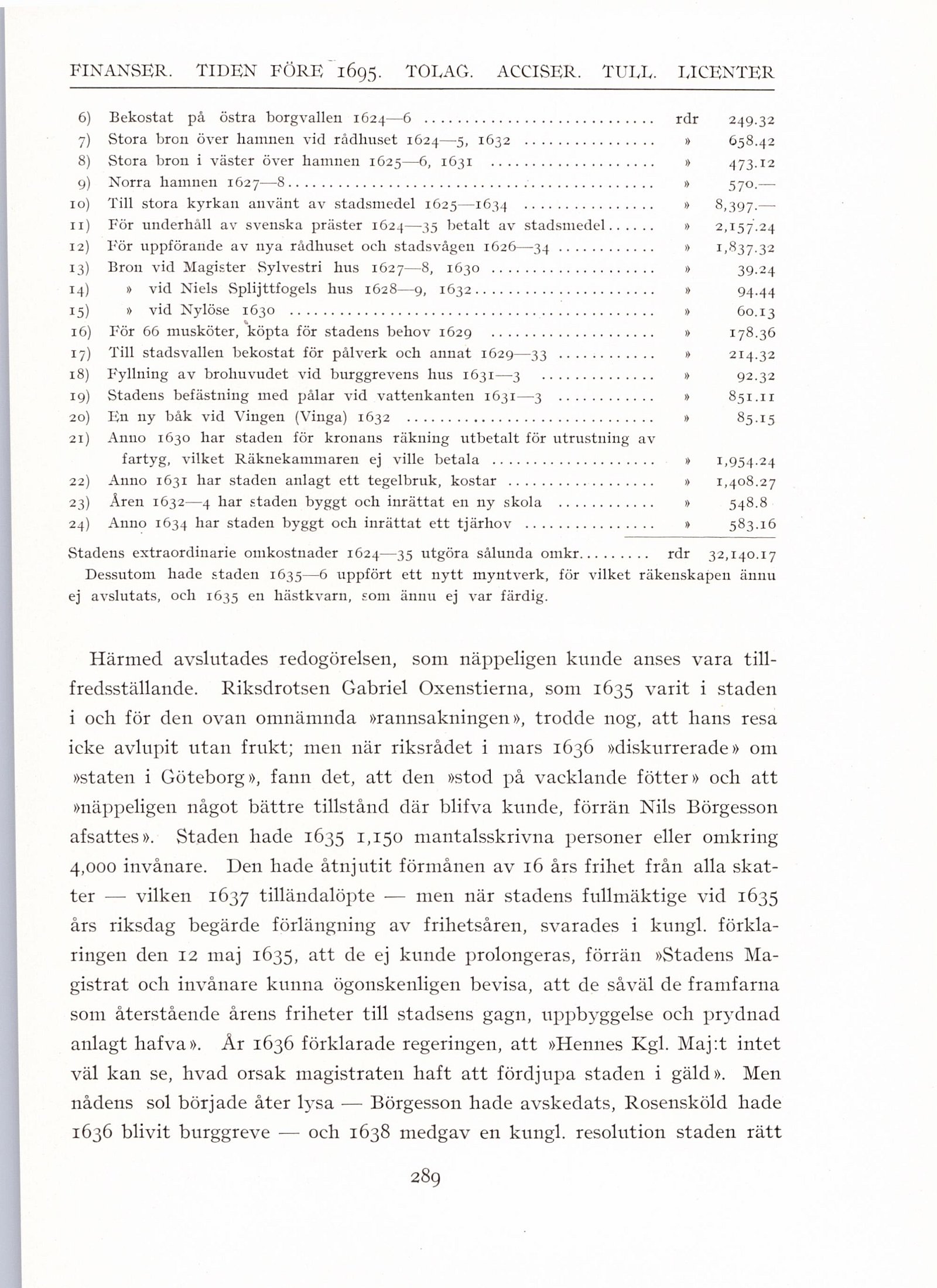 Stadens extraordinarie omkostnader 1624—35 utgöra sålunda omkr............. rdr 32,140.17
