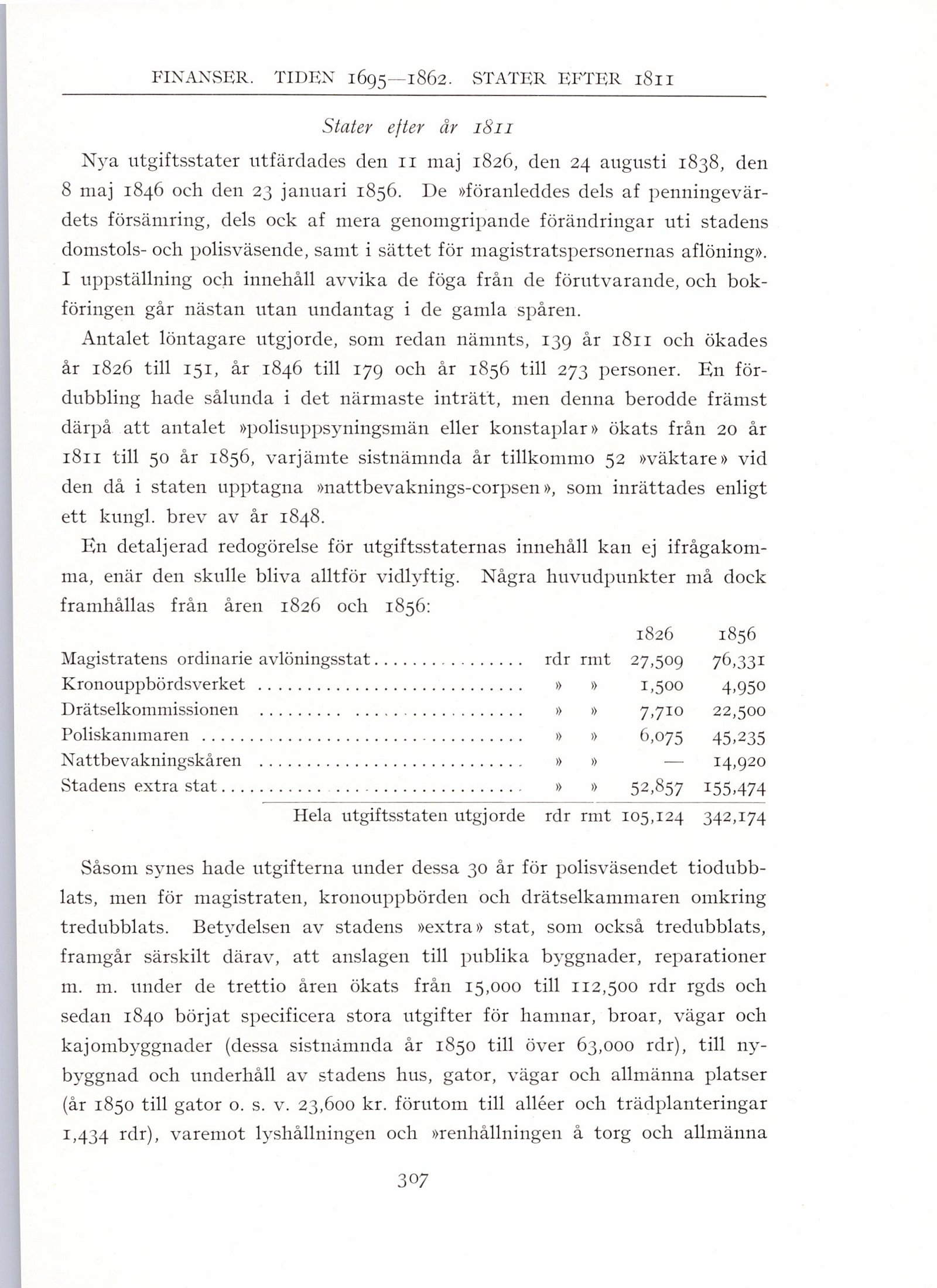 Nya utgiftsstater utfärdades den 11 maj 1826, den 24 augusti 1838, den
