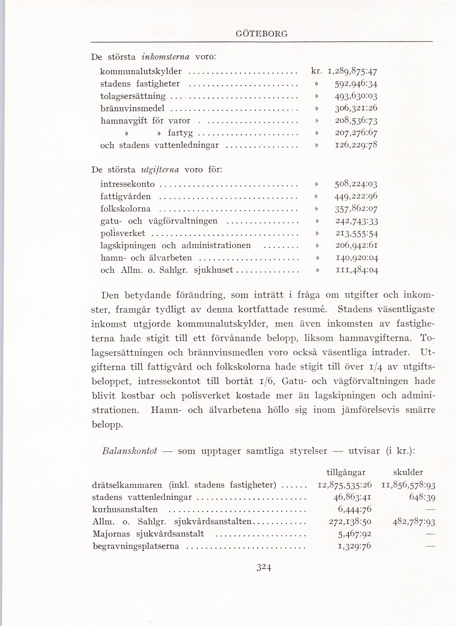 inkomster, framgår tydligt av denna kortfattade resumé. Stadens väsentligaste