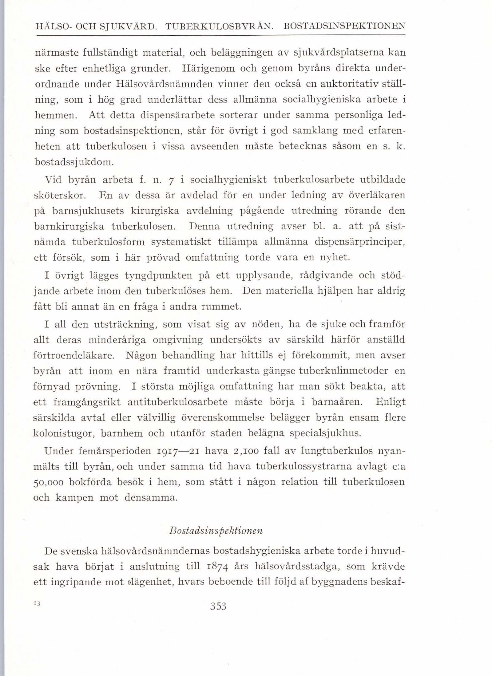 Under femårsperioden 1917—21 hava 2,100 fall av lungtuberkulos