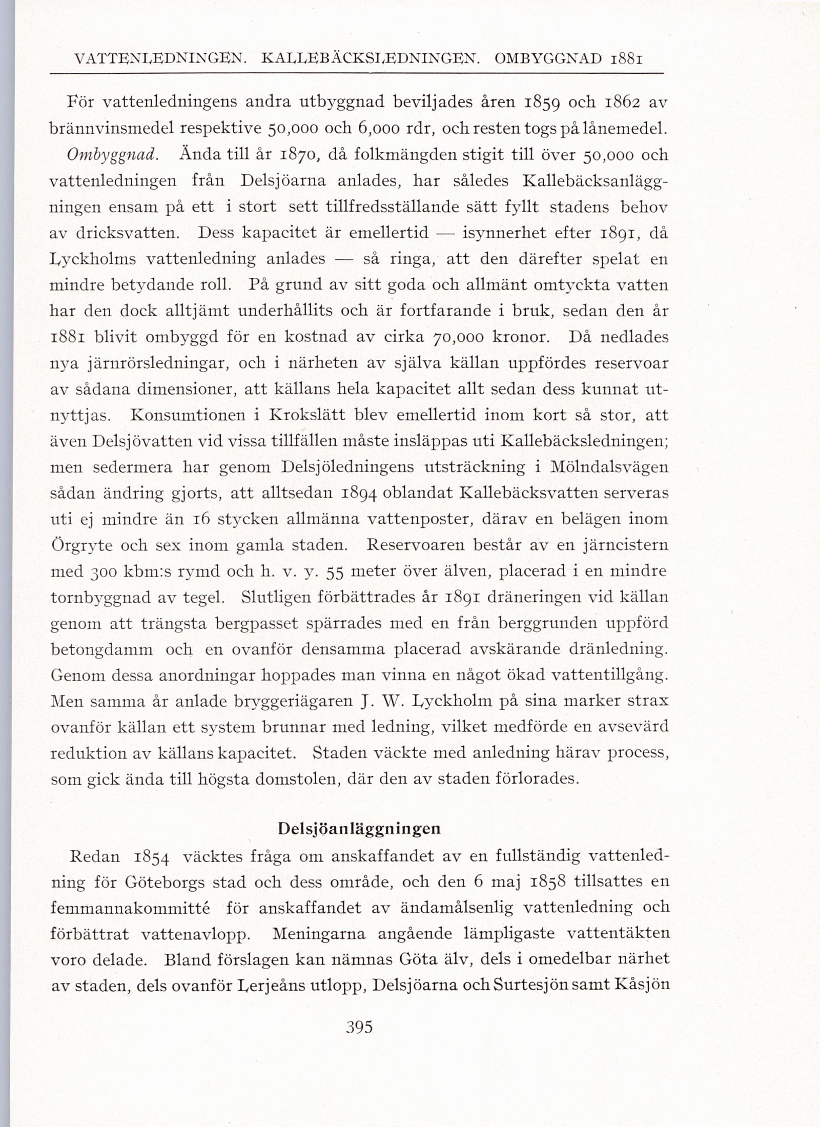 även Delsjövatten vid vissa tillfällen måste insläppas uti Kallebäcksledningen;