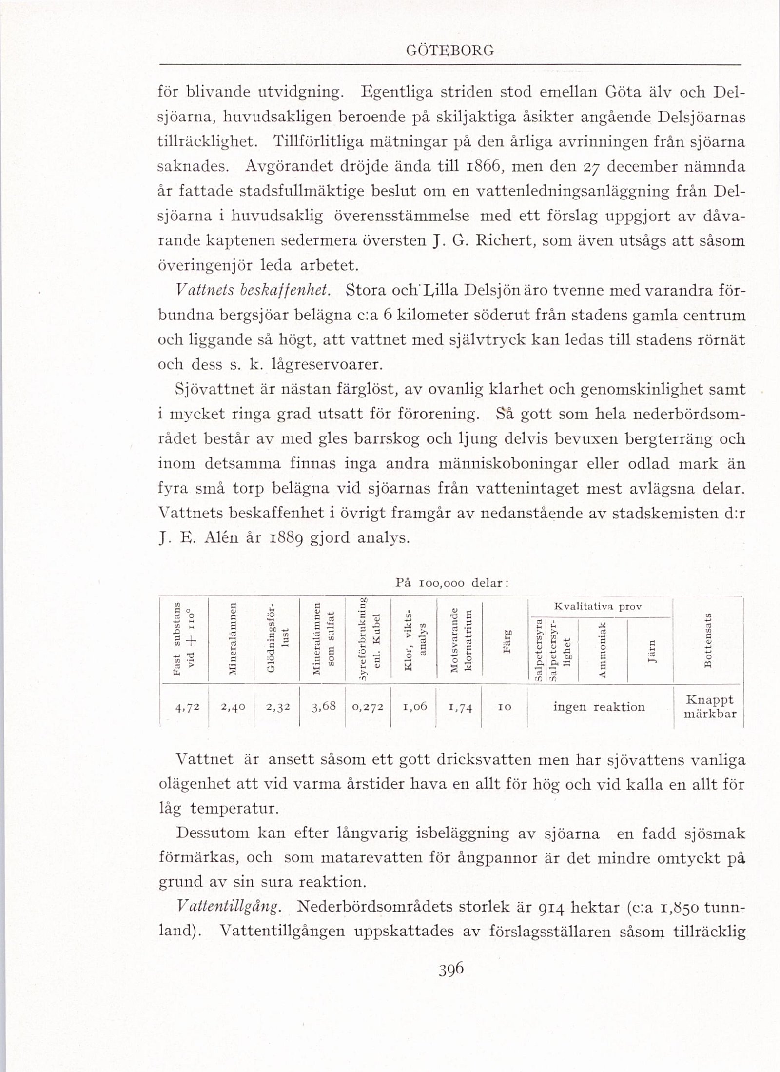Vattnets beskaffenhet i övrigt framgår av nedanstående av stadskemisten d:r