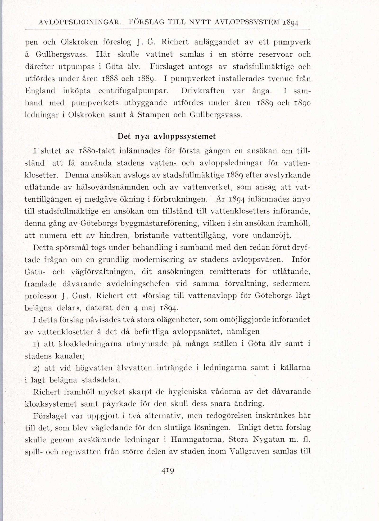 professor J. Gust. Richert ett »förslag till vattenavlopp för Göteborgs lågt