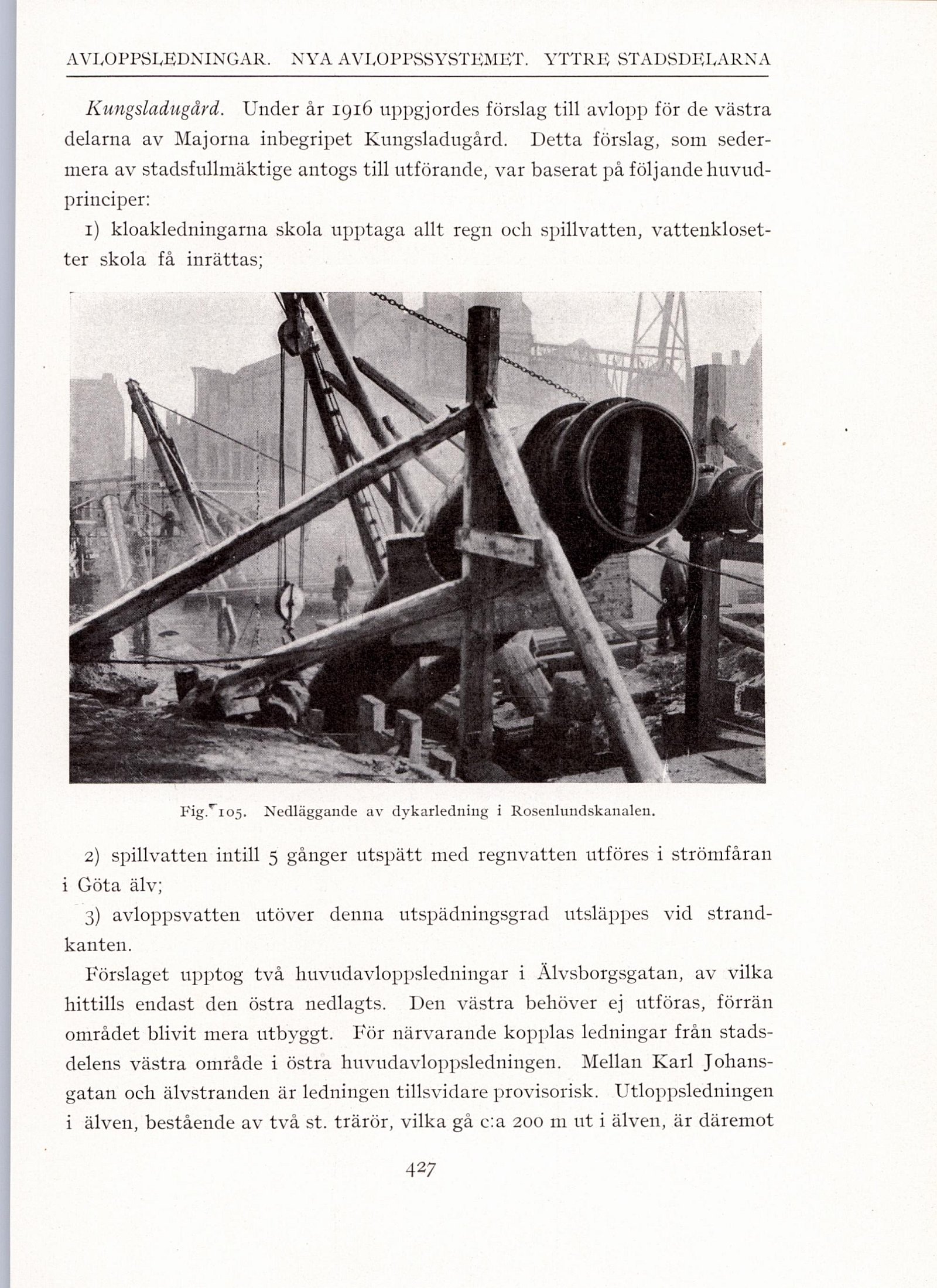 Kungsladugård. Under år 1916 uppgjordes förslag till avlopp för de västra