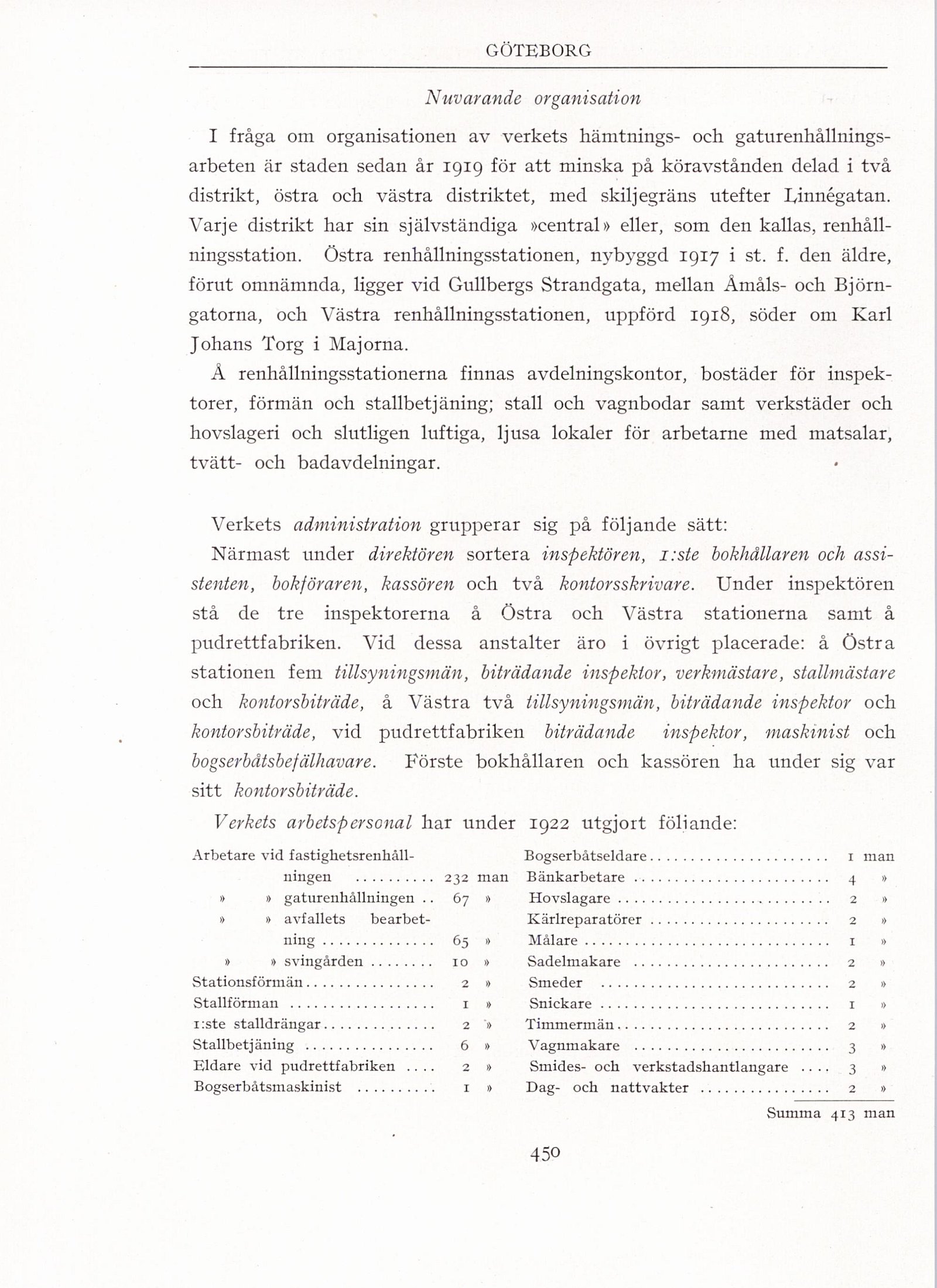 Verkets arbetspersonal har under 1922 utgjort följande: