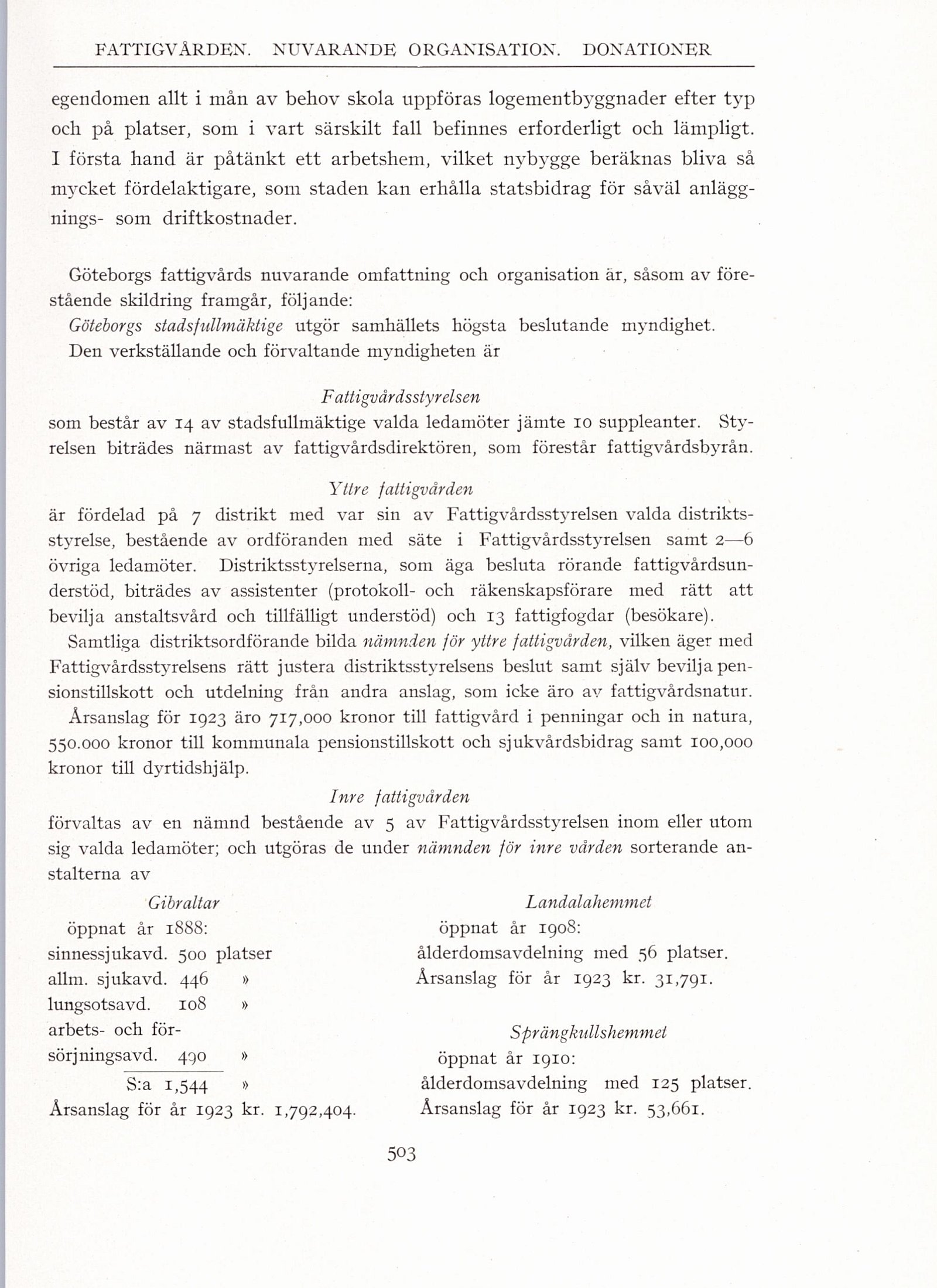 Göteborgs fattigvårds nuvarande omfattning och organisation är, såsom av
