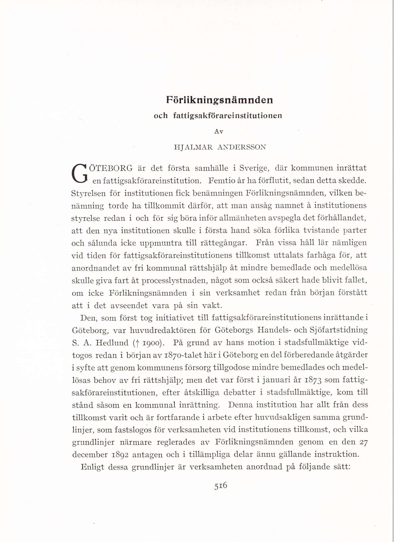 - Förlikningsnämnden och fattigsakförareinstitutionen. Av HJALMAR ANDERSSON