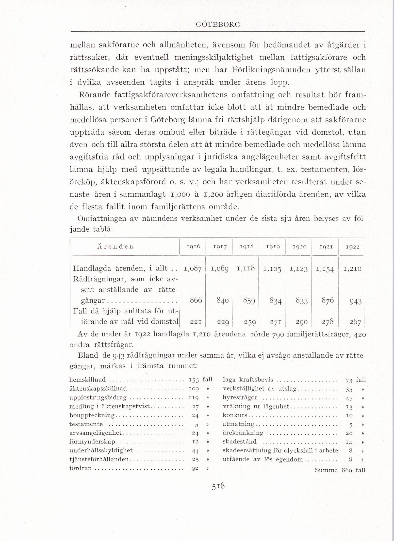 Av de under år 1922 handlagda 1,210 ärendena rörde 790 familjerättsfrågor, 420