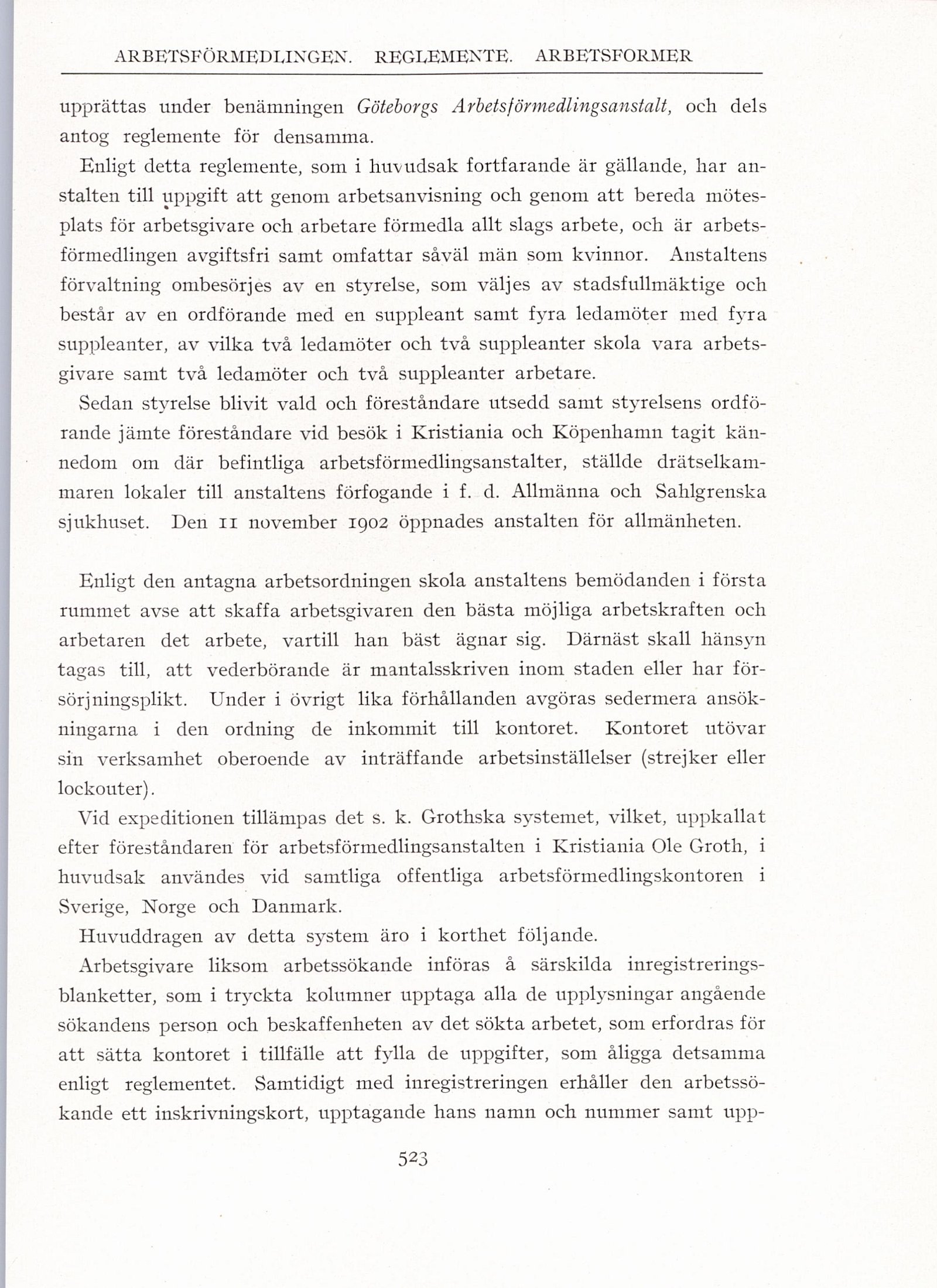 upprättas under benämningen Göteborgs ArbetsförmedlingsanstaU, och dels