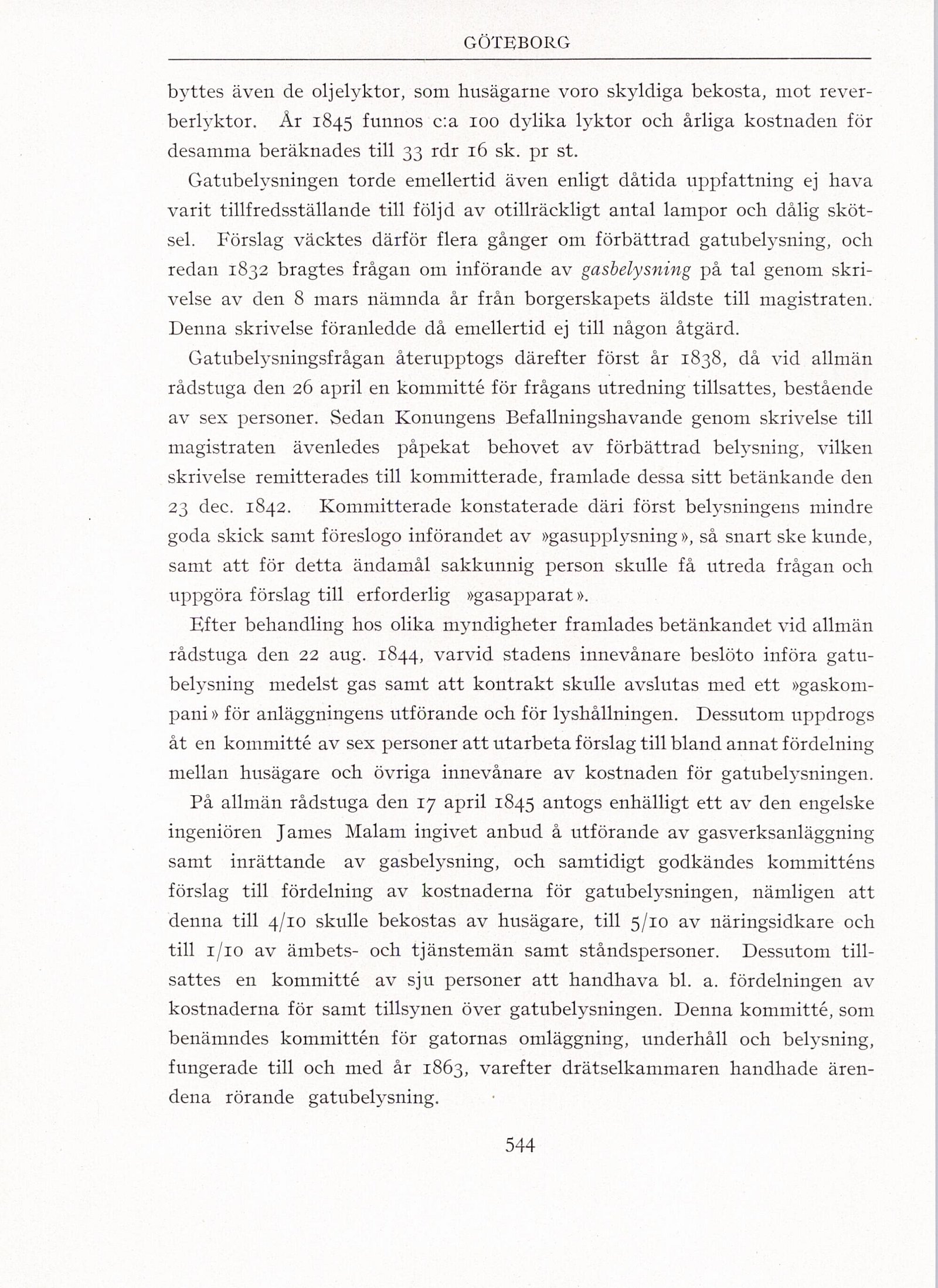 samt inrättande av gasbelysning, och samtidigt godkändes kommitténs