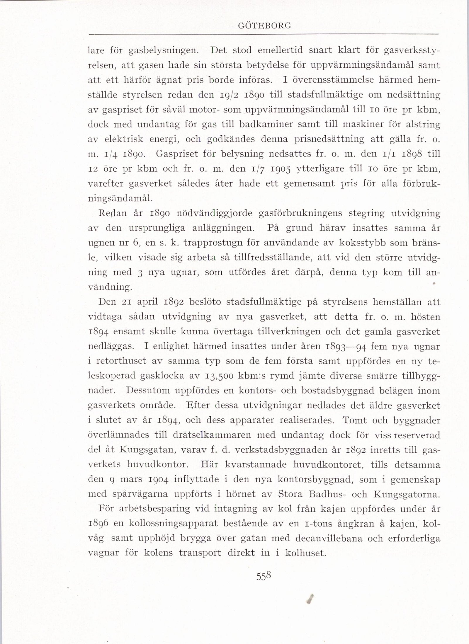 m. 1/4 1890. Gaspriset för belysning nedsattes fr. o. m. den 1/1 1898 till