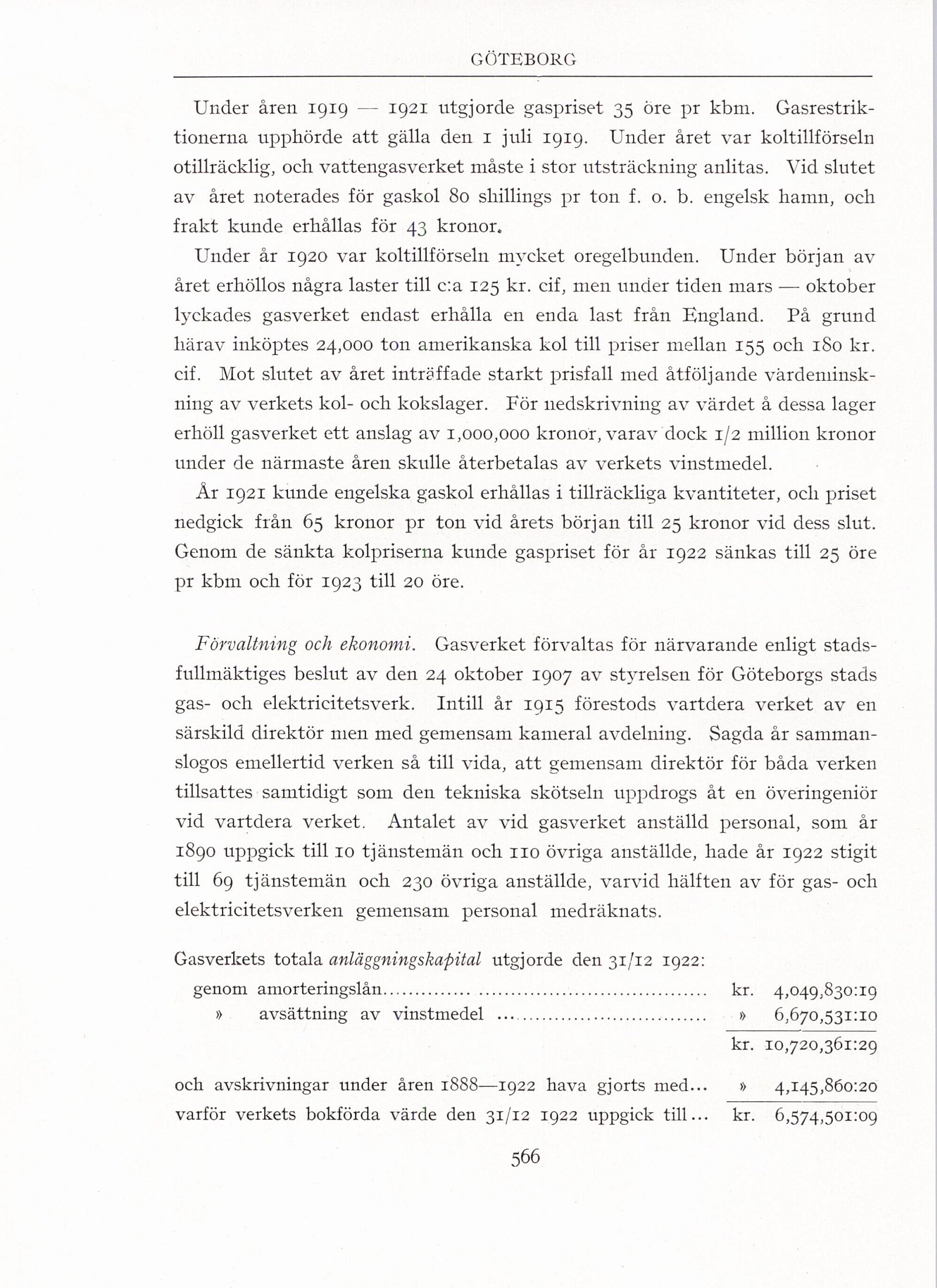 Under åren 1919 — 1921 utgjorde gaspriset 35 öre pr kbm.