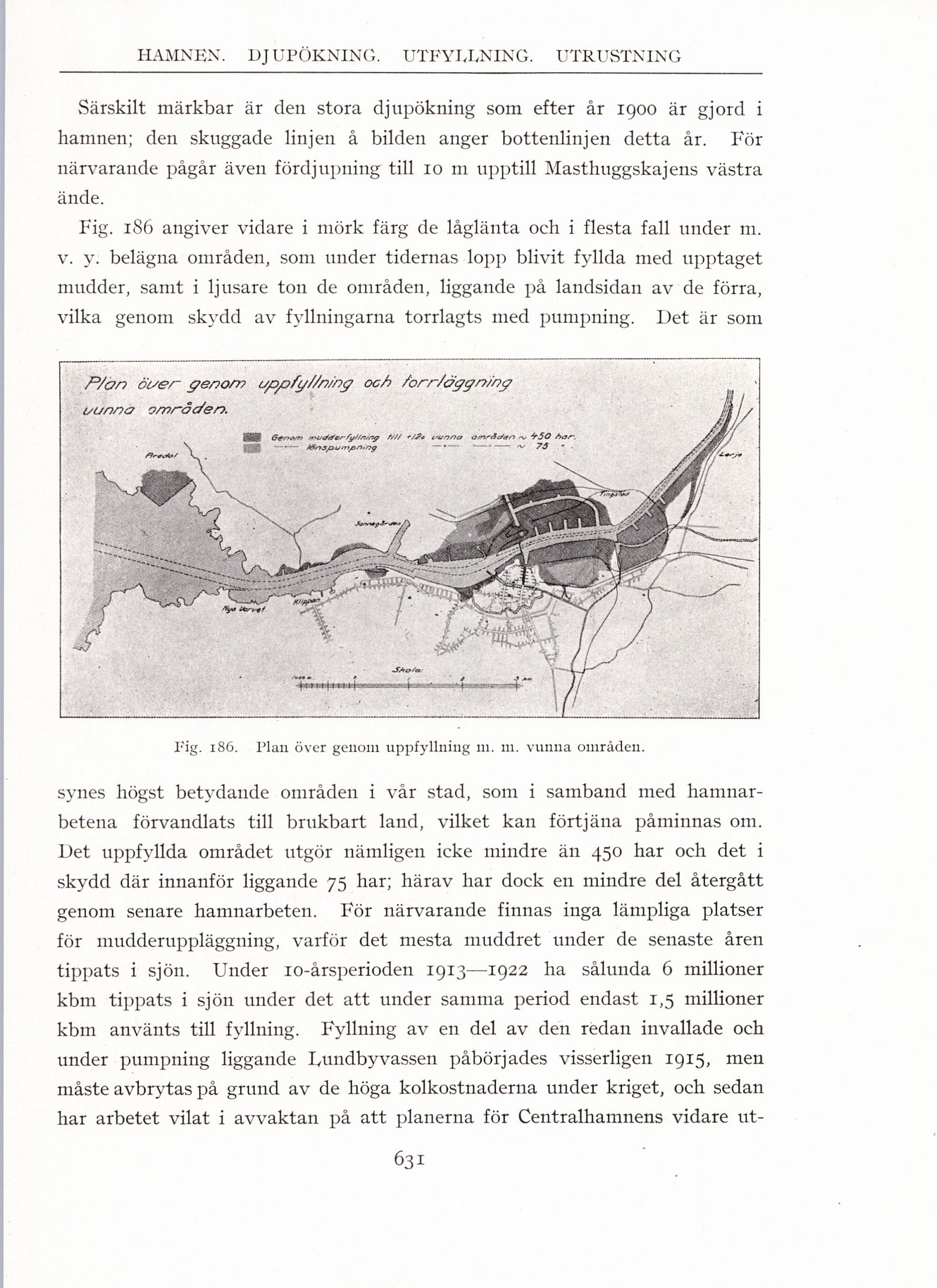 Fig. 186. Plan över genom uppfyllning m. m. vunna områden.