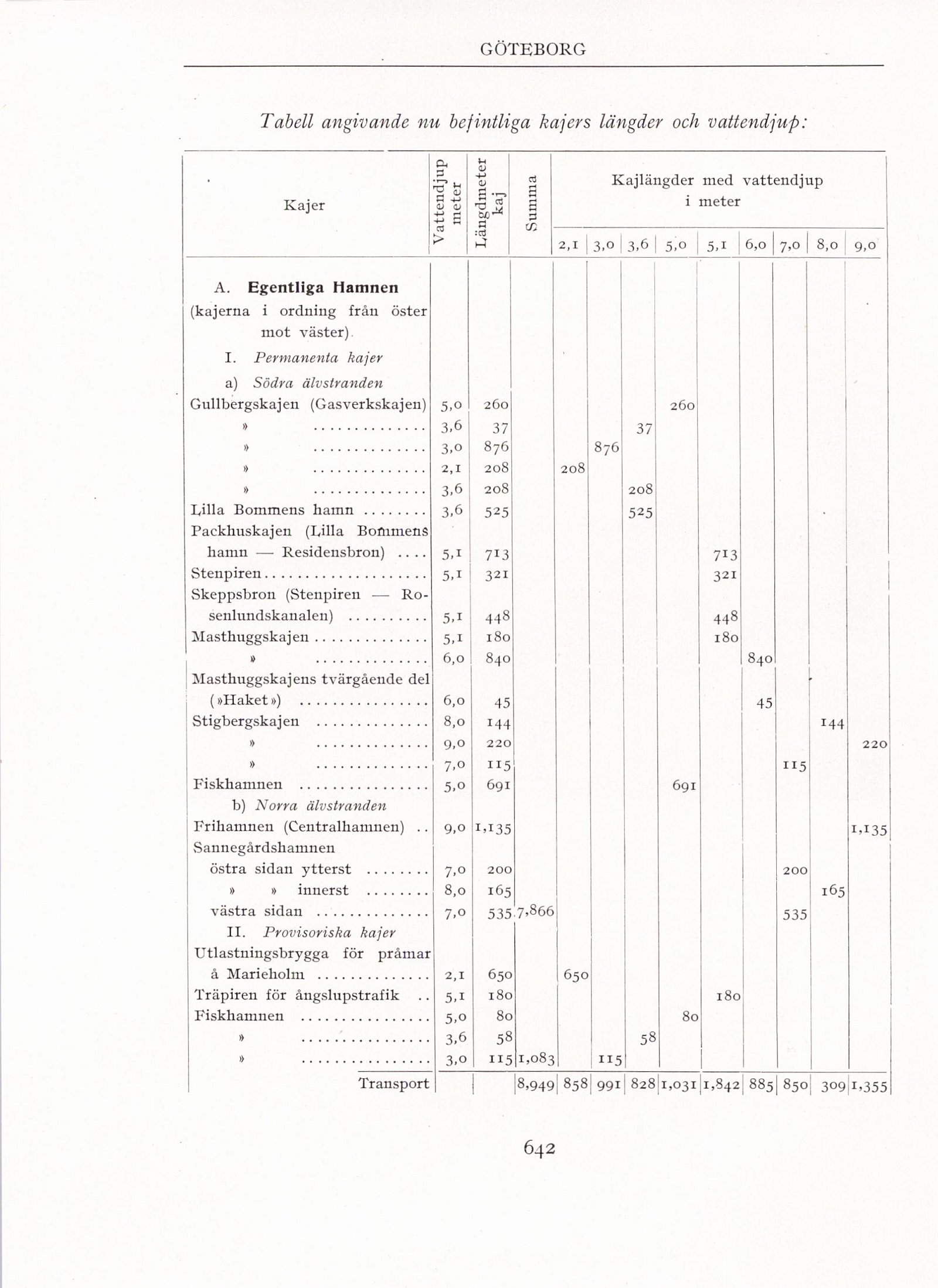 Tabell angivande nu befintliga kajers längder och vattendjup: