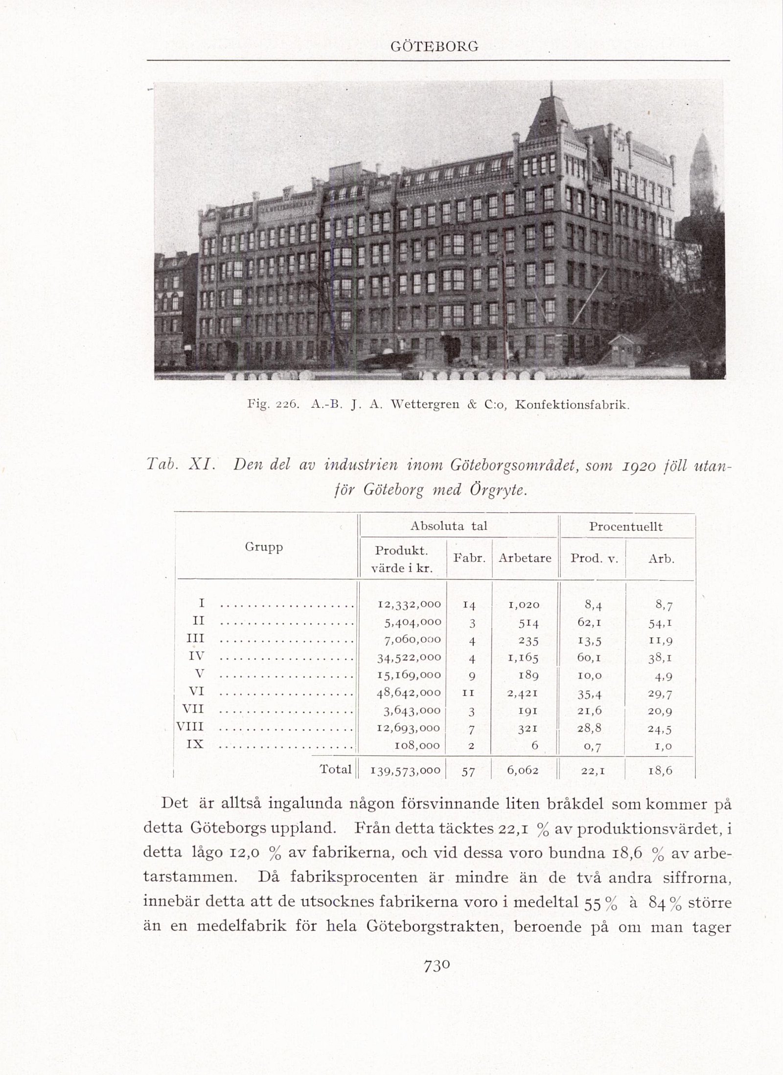 Tab. XI. Den del av industrien inom Göteborgsområdet, som 1920 föll