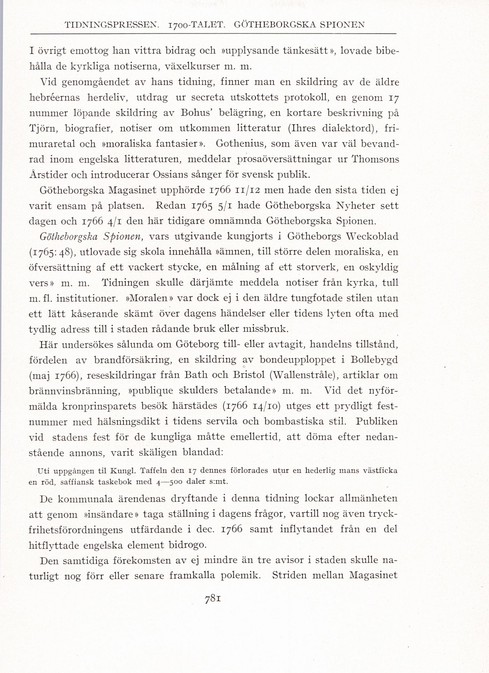 dagen och 1766 4/1 den här tidigare omnämnda Götheborgska Spionen.