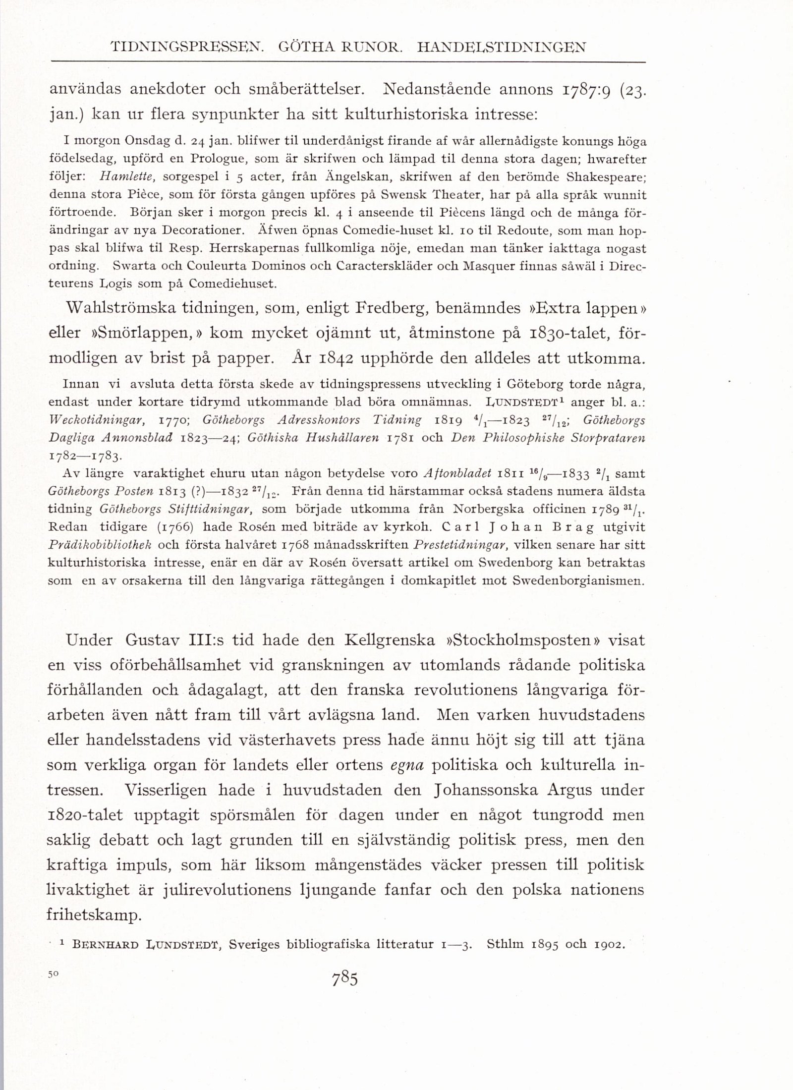 1 Bernhard LvndstedT, Sveriges bibliografiska litteratur 1—3. Sthlm 1895 och 1902.