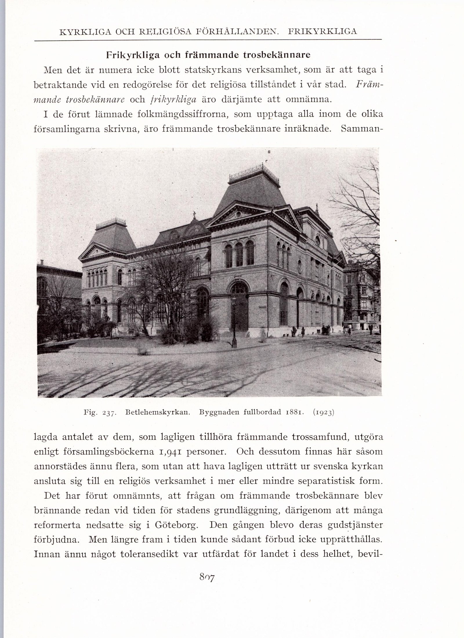 Fig. 237. Betlehemskyrkan. Byggnaden fullbordad 1881. (1923)