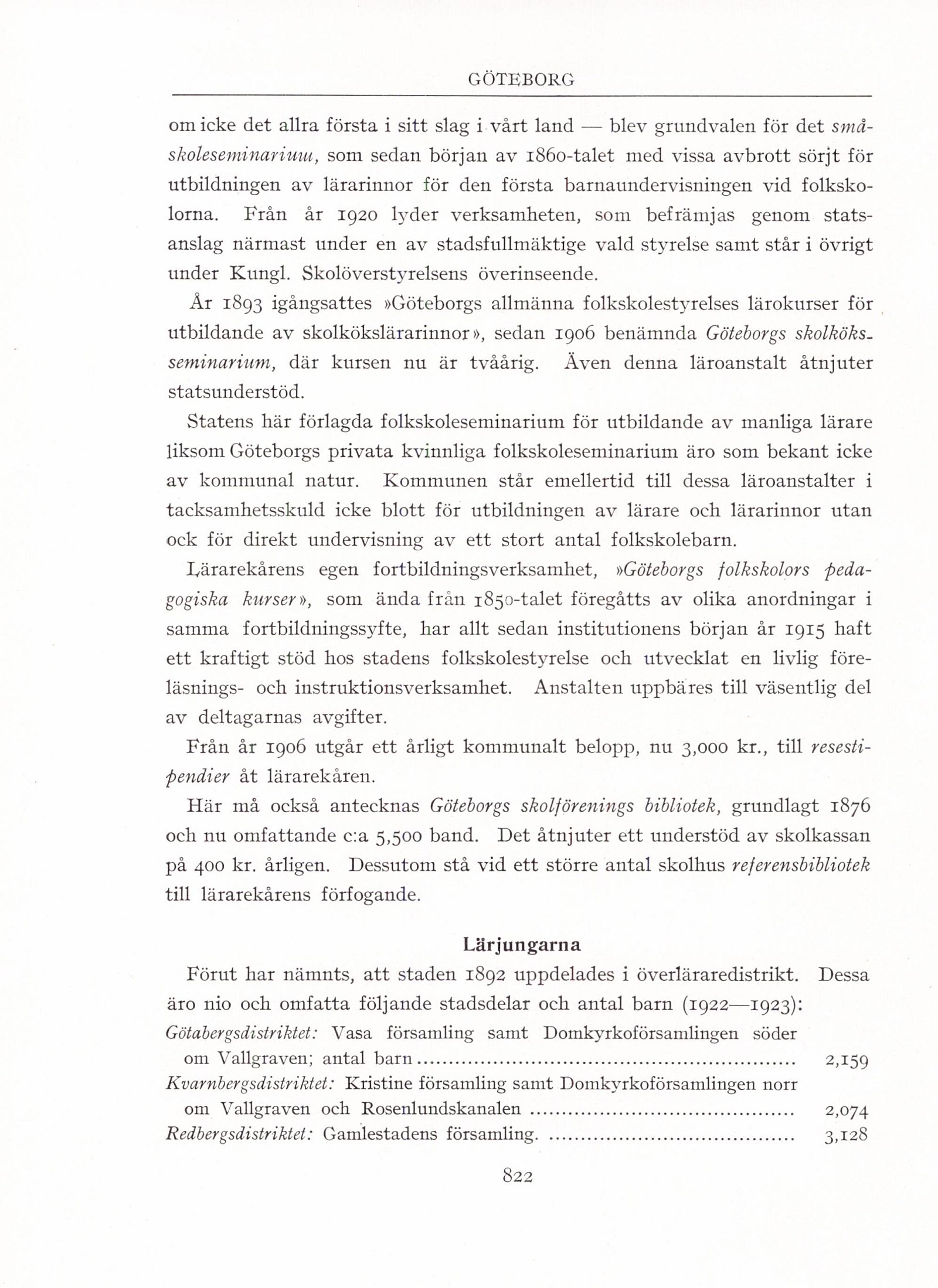 Förut har nämnts, att staden 1892 uppdelades i överläraredistrikt. Dessa
