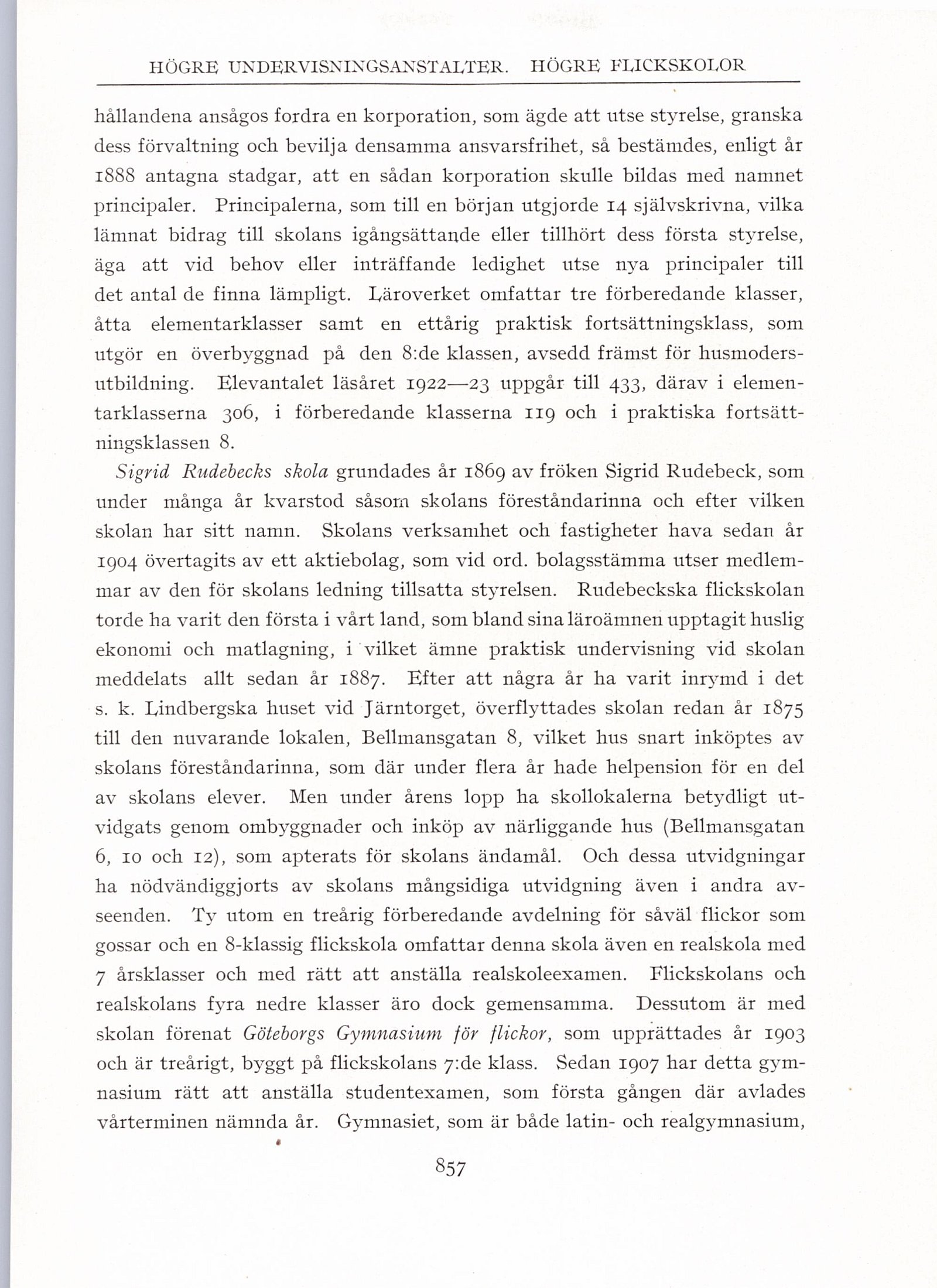 Sigrid Rudebecks skola grundades år 1869 av fröken Sigrid Rudebeck, som