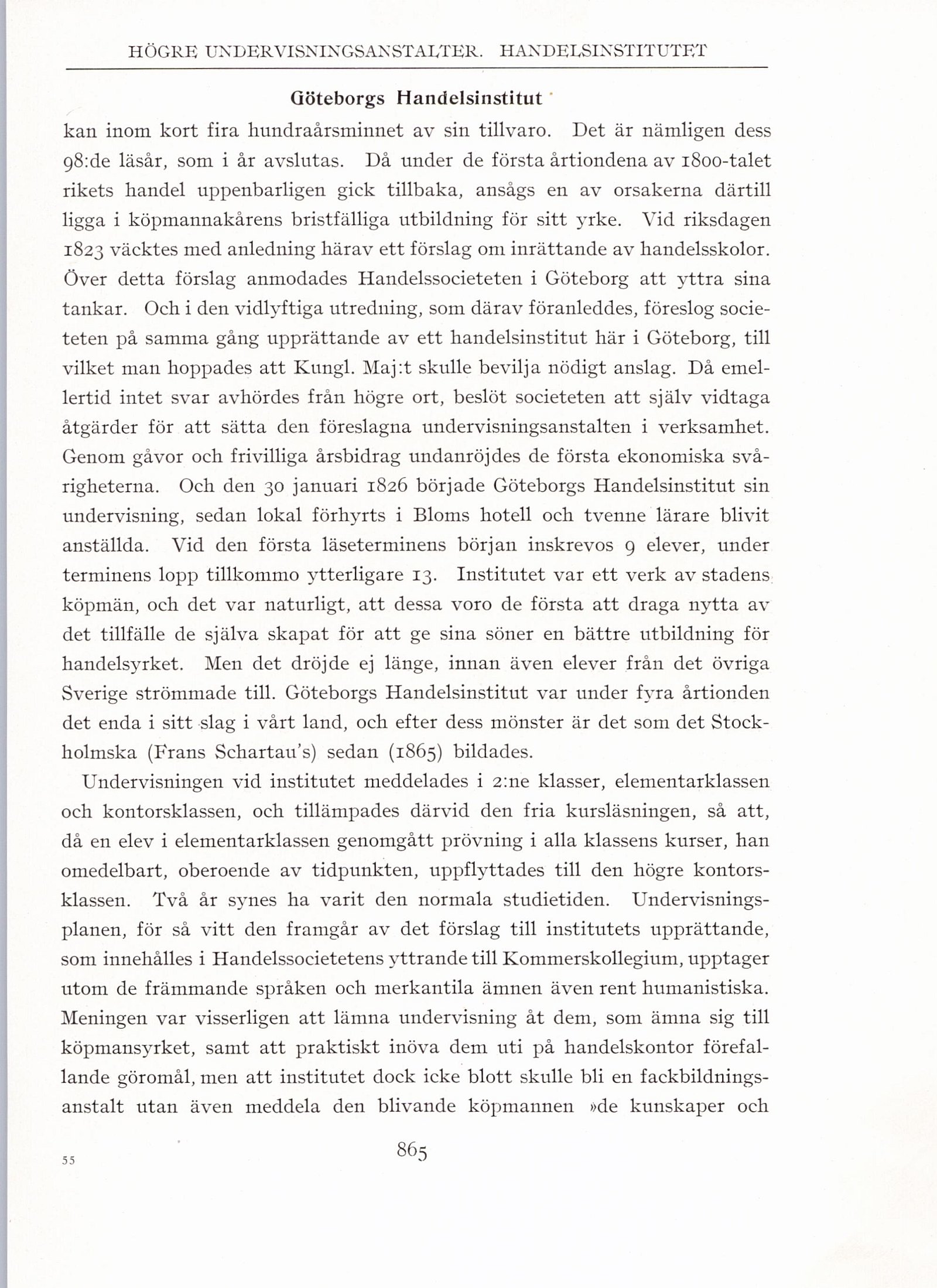 svårigheterna. Och den 30 januari 1826 började Göteborgs Handelsinstitut sin
