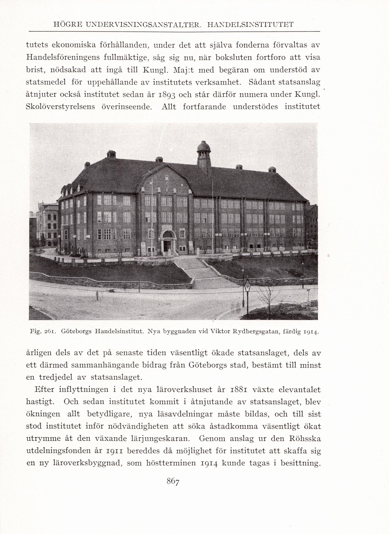 Fig. 261. Göteborgs Handelsinstitut. Nya byggnaden vid Viktor Rydbergsgatan, färdig 1914.