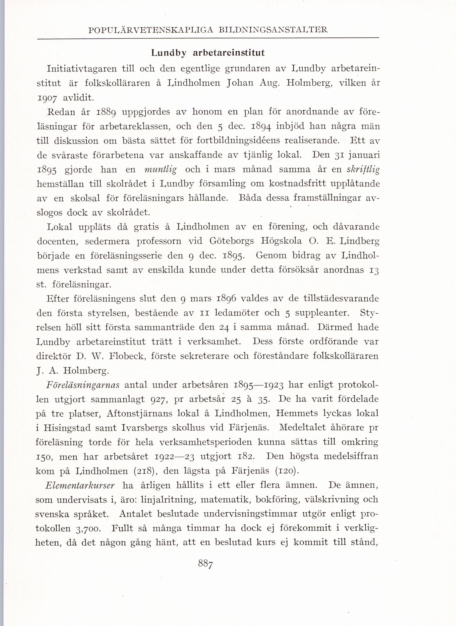 arbetareinstitut är folkskolläraren å Lindholmen Johan Aug. Holmberg, vilken år