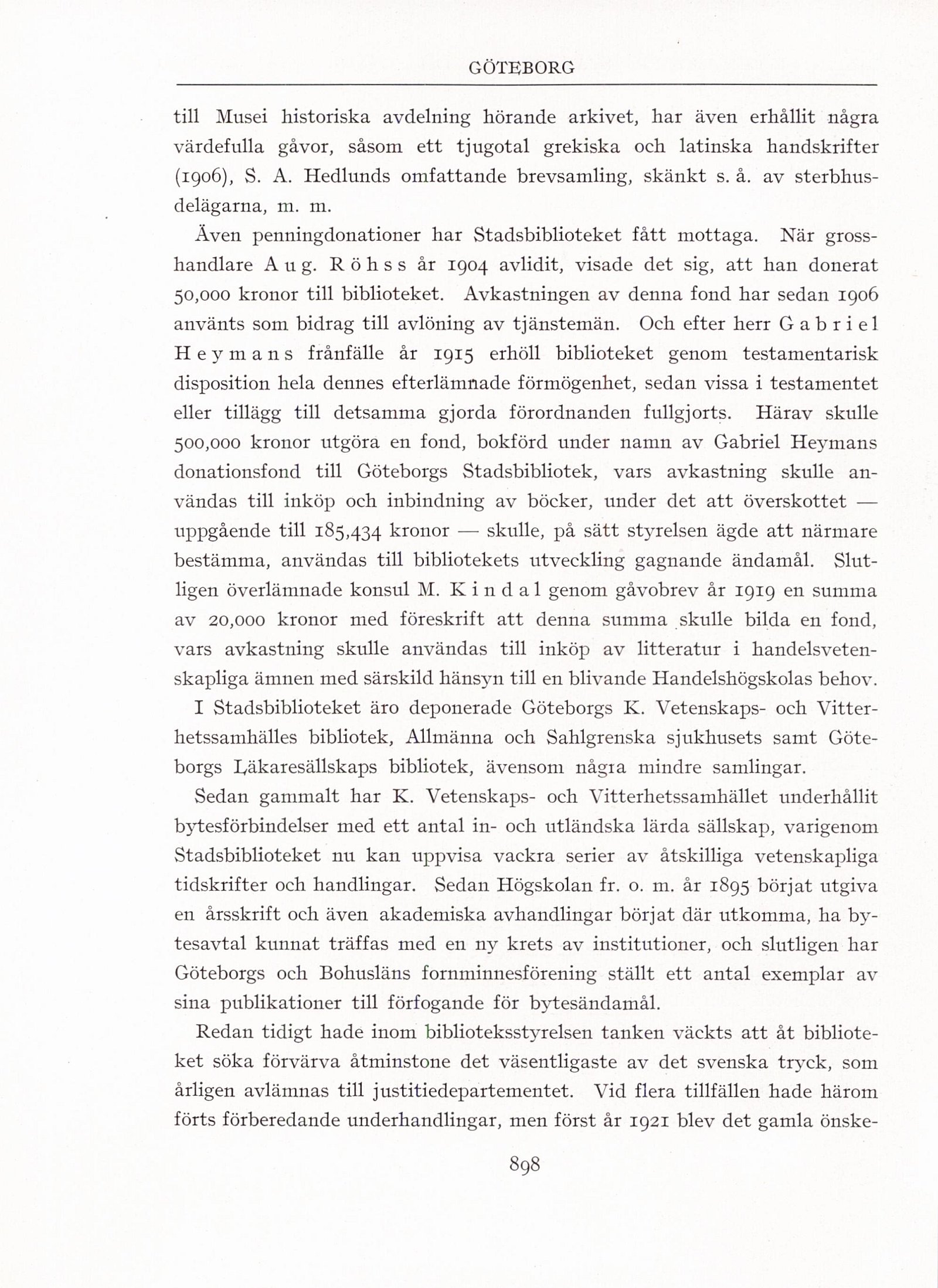 50.000 kronor till biblioteket. Avkastningen av denna fond har sedan 1906