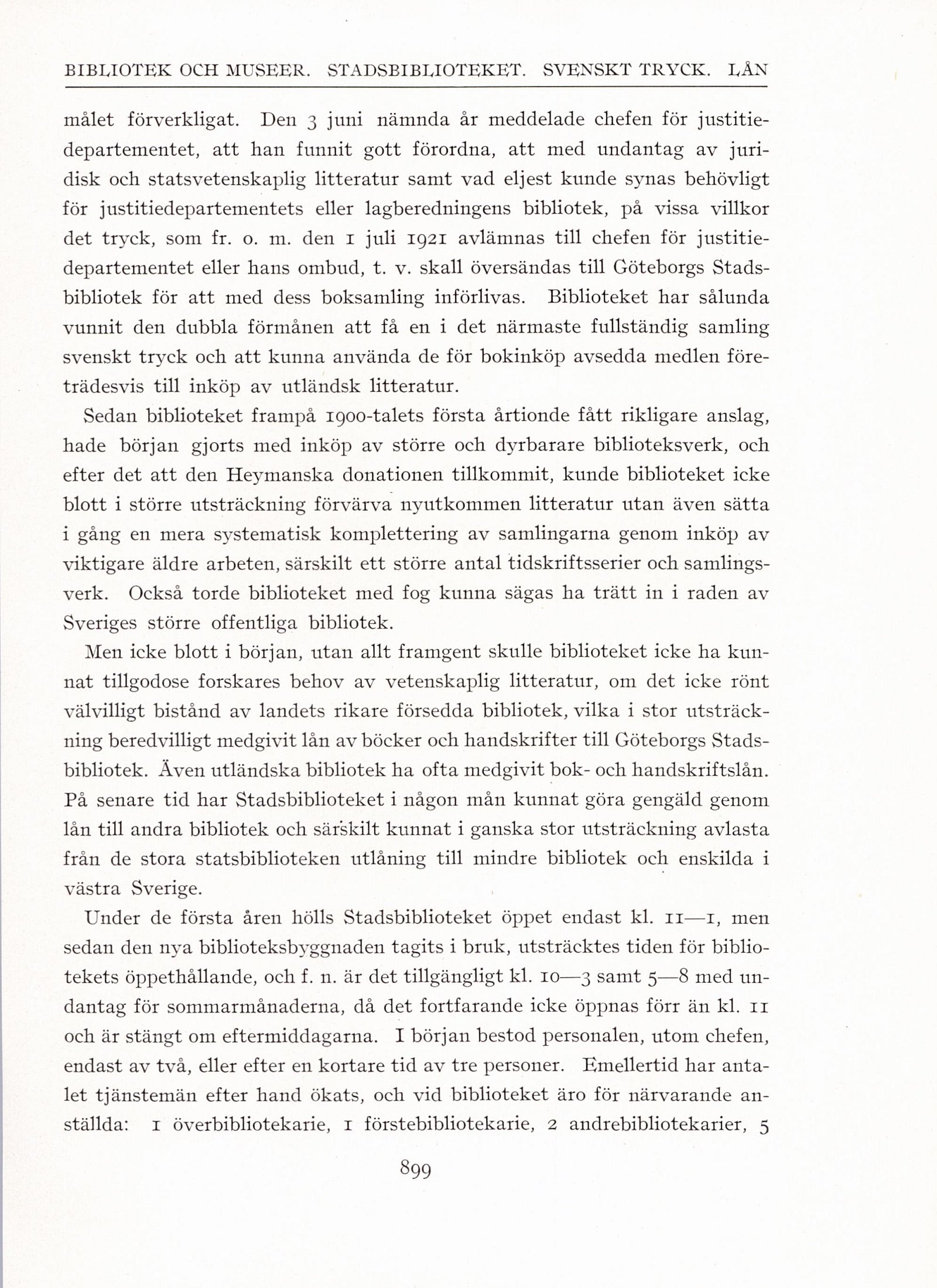 anställda: 1 överbibliotekarie, 1 förstebibliotekarie, 2 andrebibliotekarier, 5