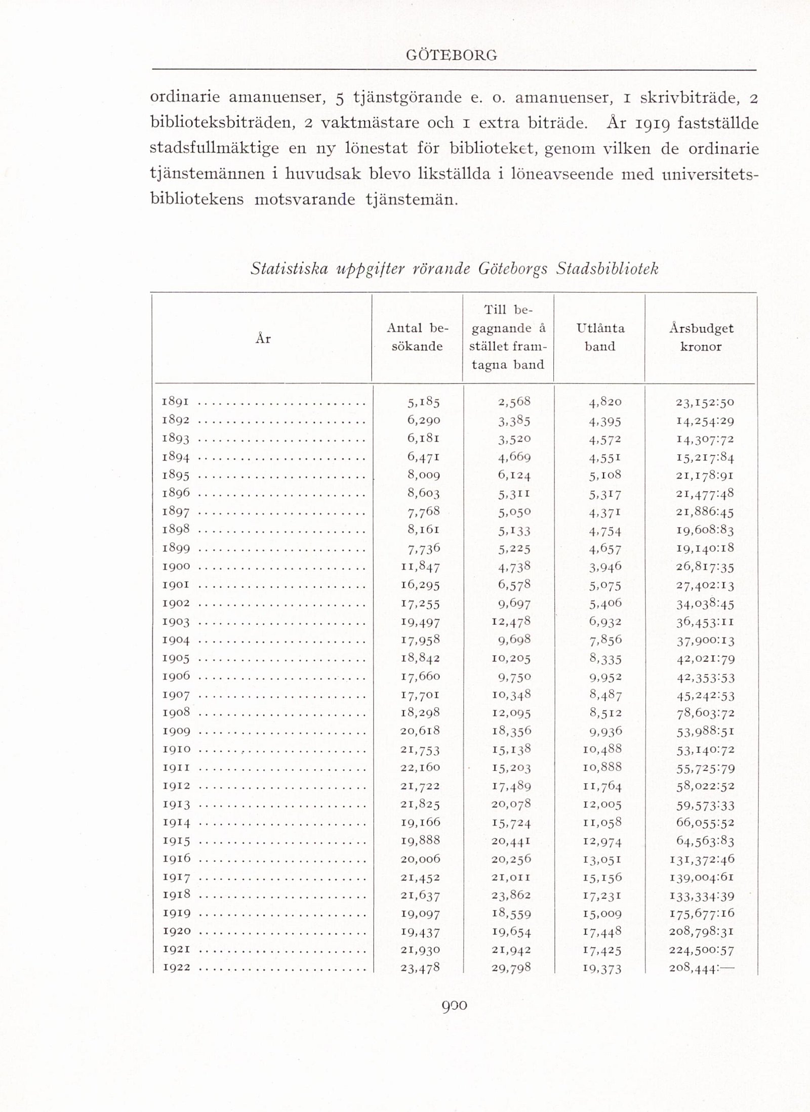 biblioteksbiträden, 2 vaktmästare och 1 extra biträde. År 1919 fastställde
