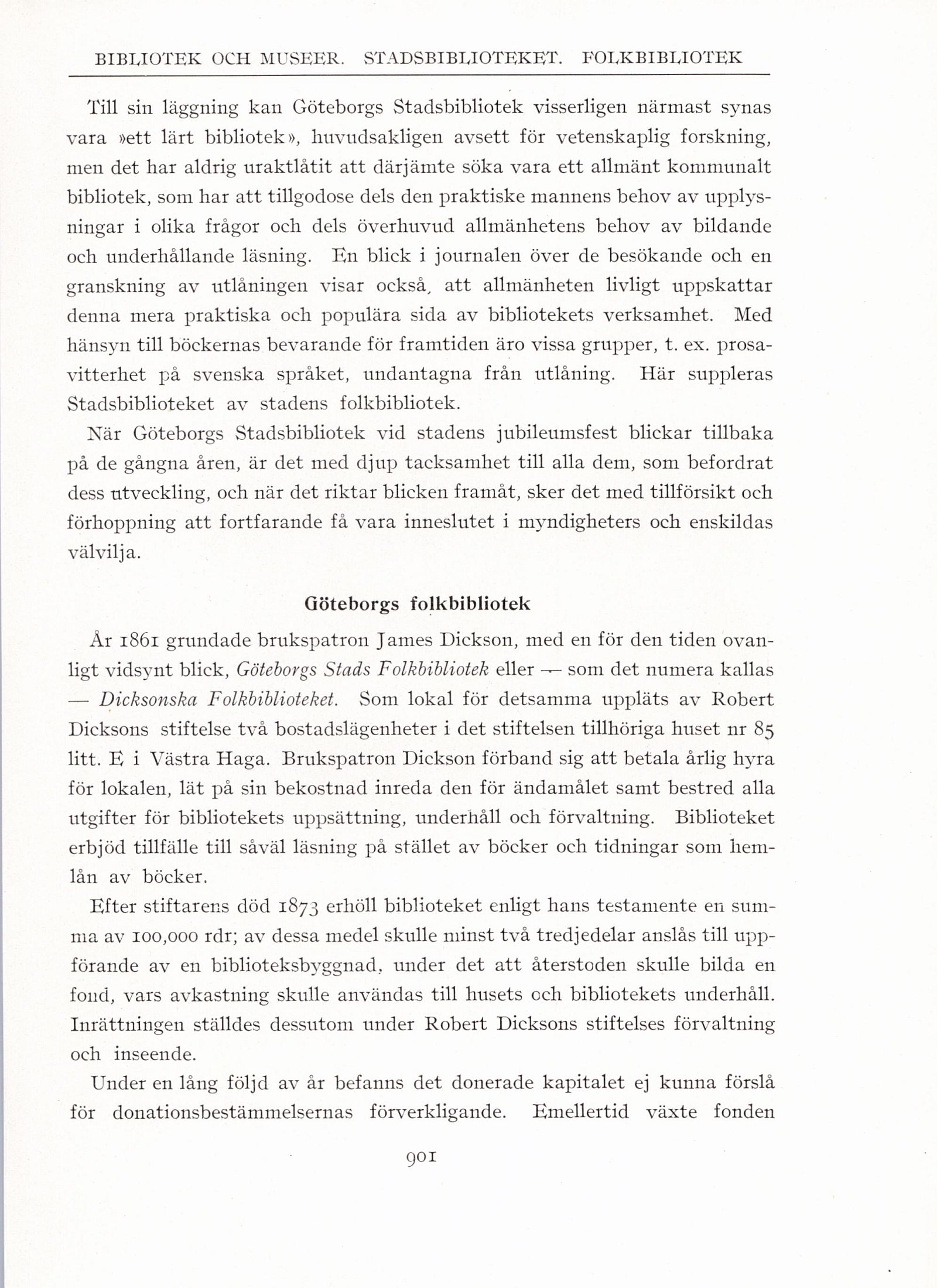 — Dicksonska Folkbiblioteket. Som lokal för detsamma uppläts av Robert