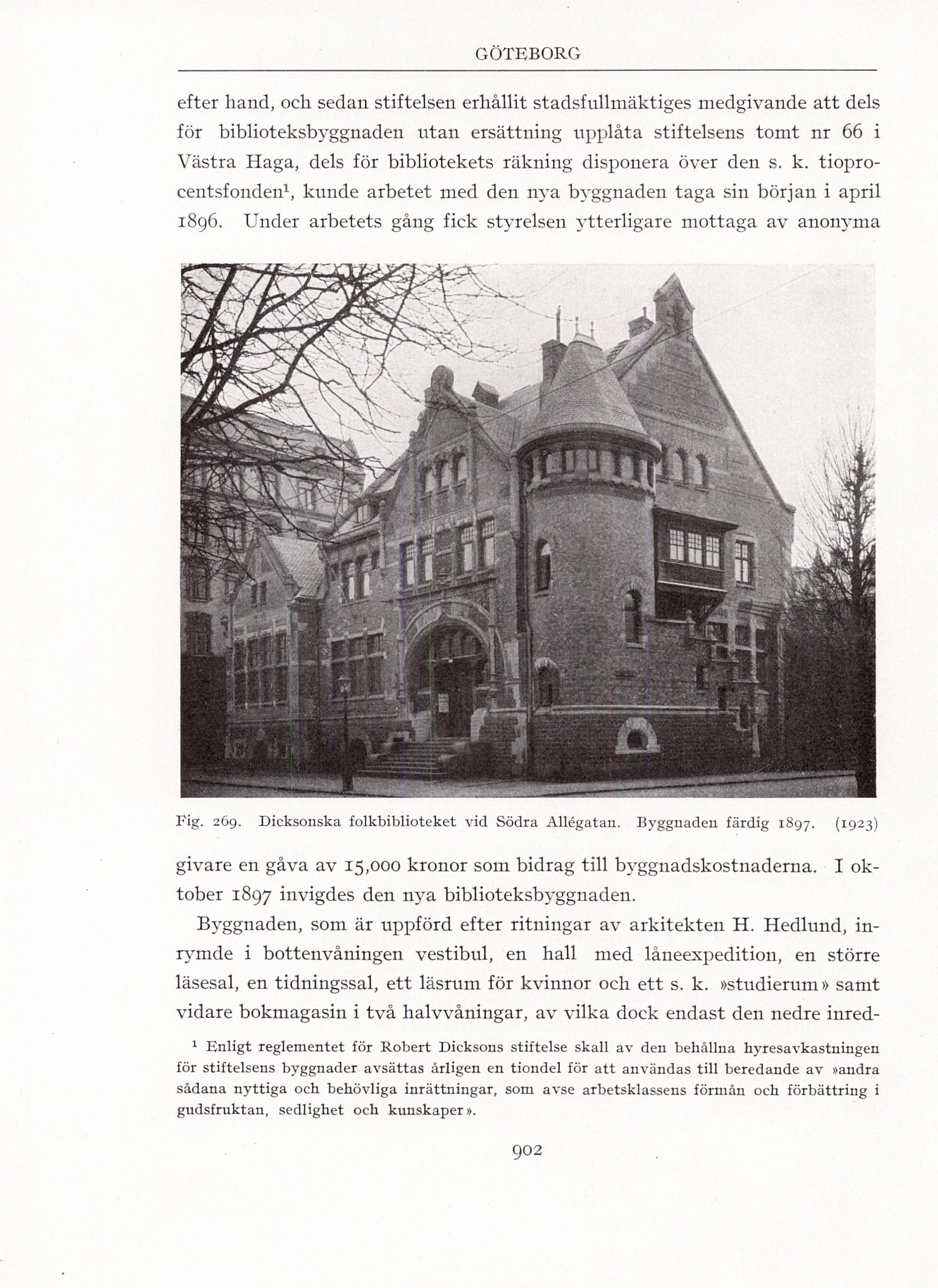 Fig. 269. Dicksonska folkbiblioteket vid Södra Allégatan. Byggnaden färdig 1897. (1923)