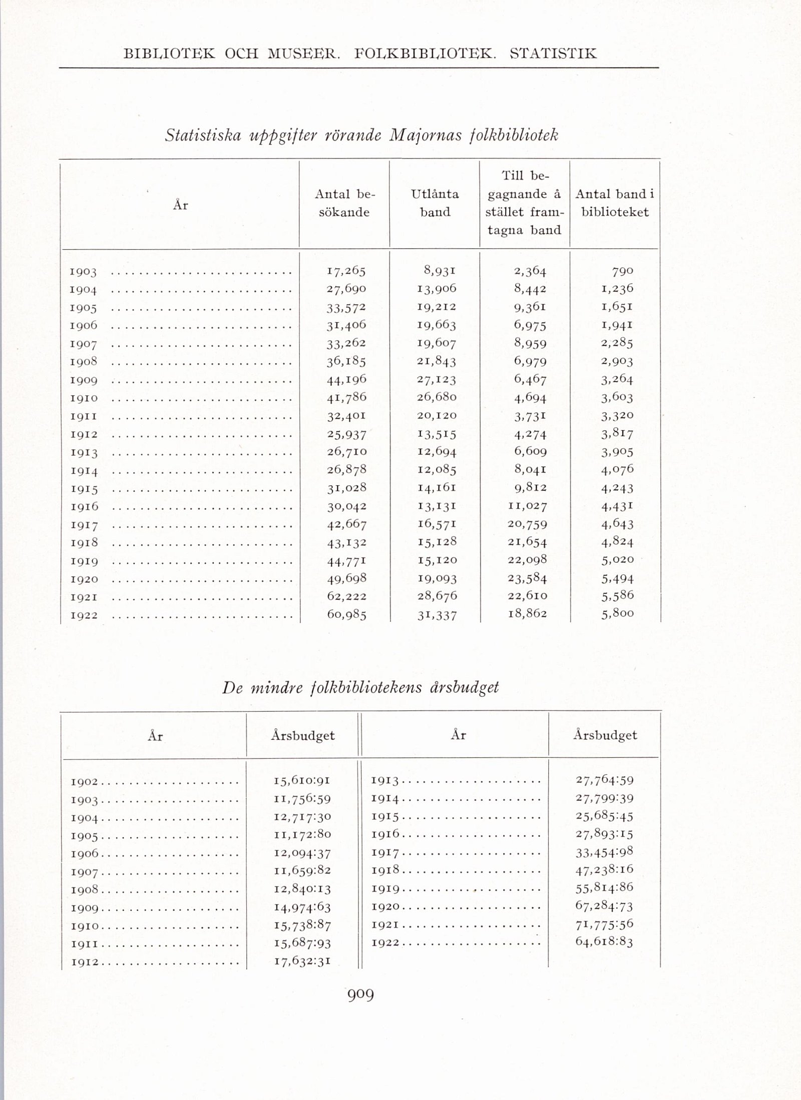Statistiska uppgifter rörande Majornas folkbibliotek