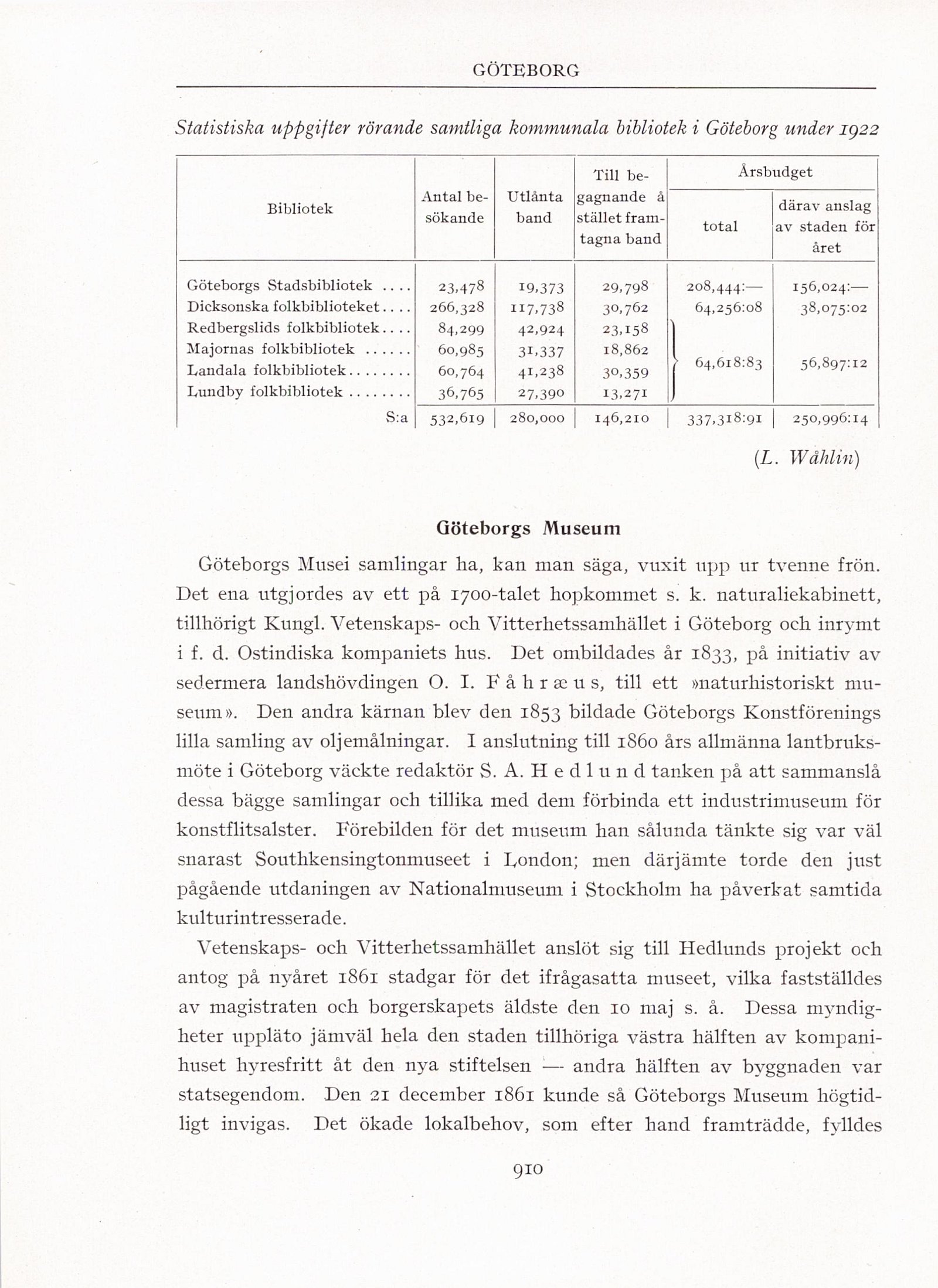 Statistiska uppgifter rörande samtliga kommunala bibliotek i Göteborg under ig22