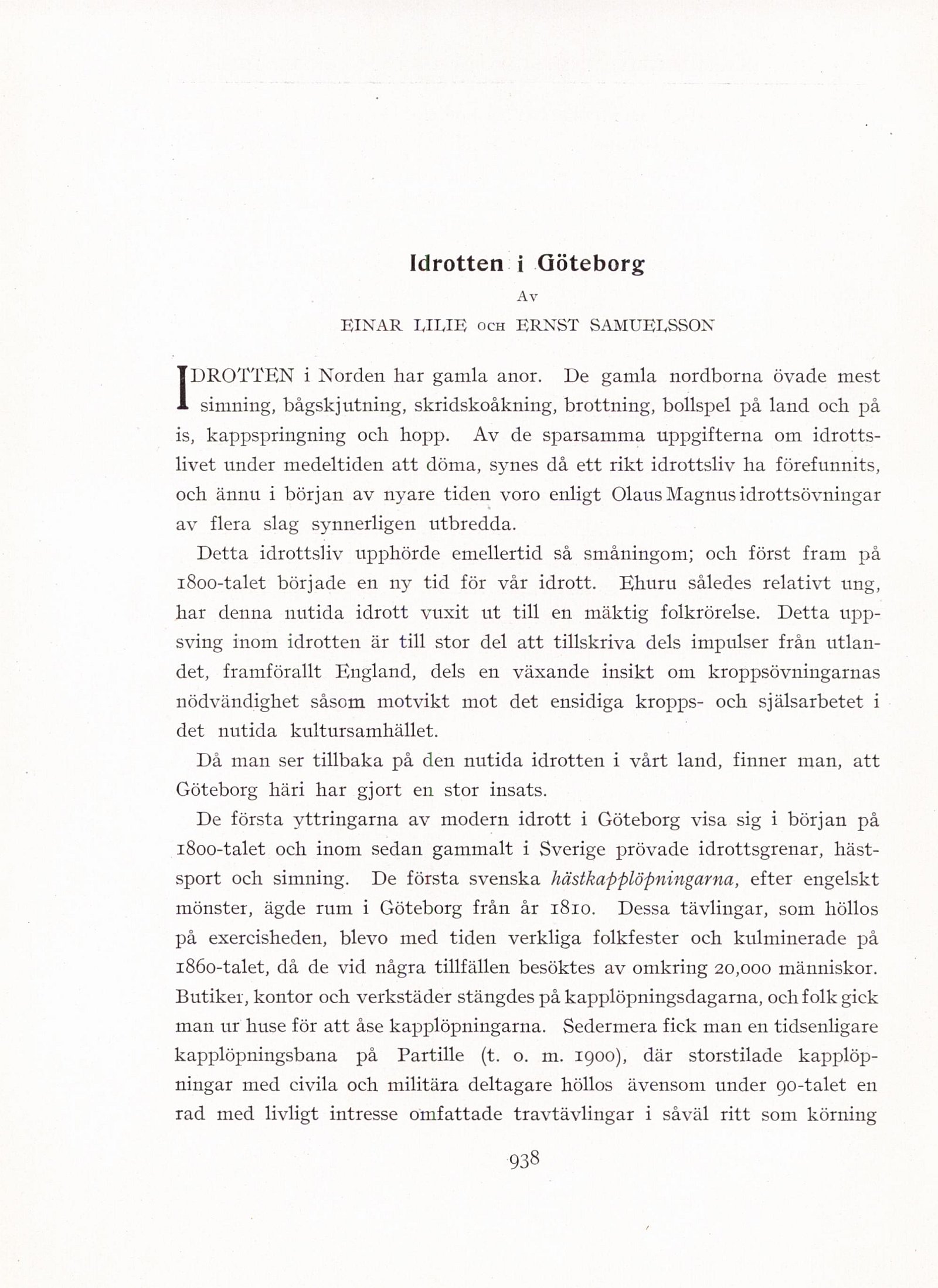 - Idrotten i Göteborg. Av EINAR LILIE och ERNST SAMUELSSON