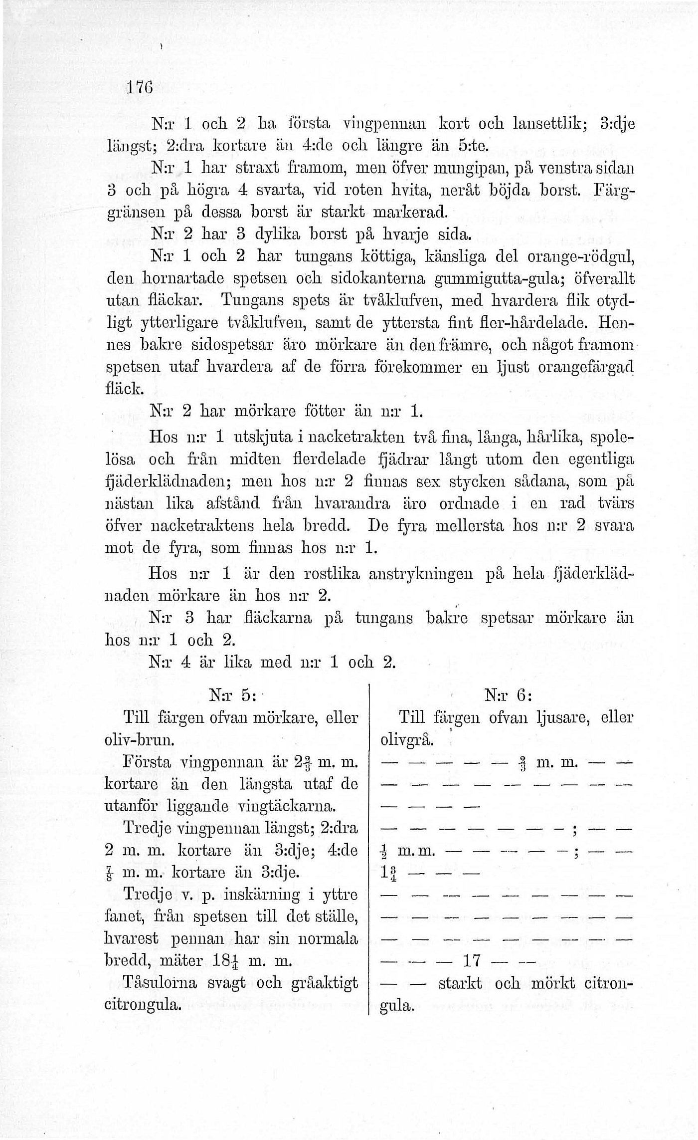 N:r 1 och 2 ha första vingpennan kort och lausettlik; 3:dje