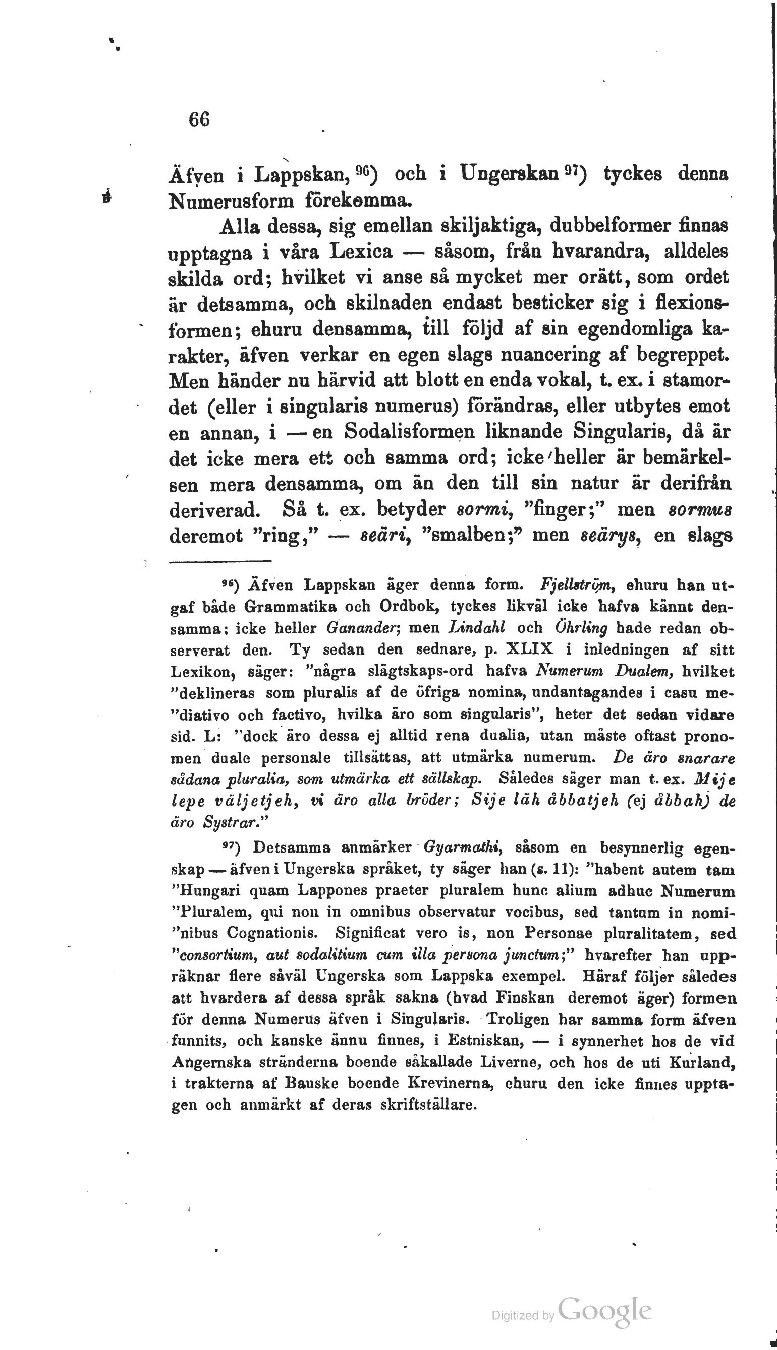 97) Detsamma anmärker ’Gyarmathi, såsom en besynnerlig egen-