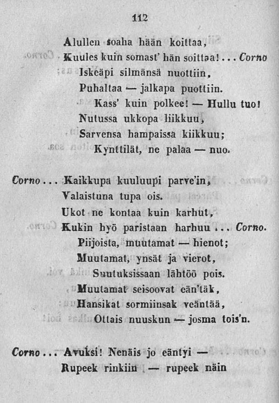 Corno ..< Avuksi! Nenäis’jo eäntyi —