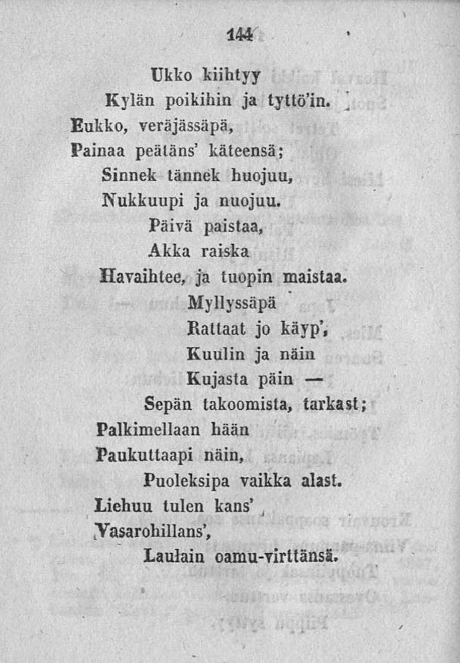 Painaa peätäns’ käteensä;