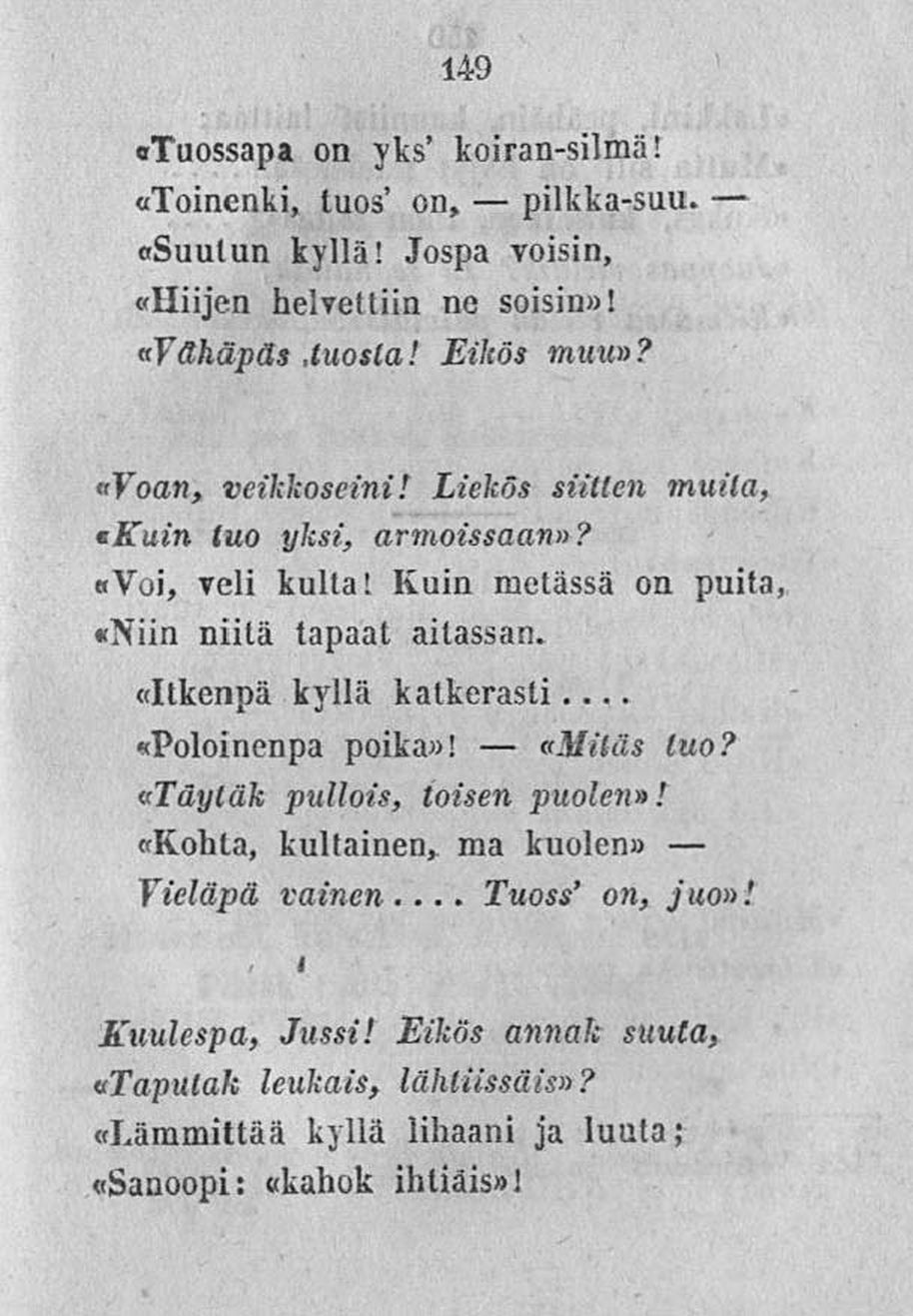 «Voan, veikkoseini! Liekös sätten muita,