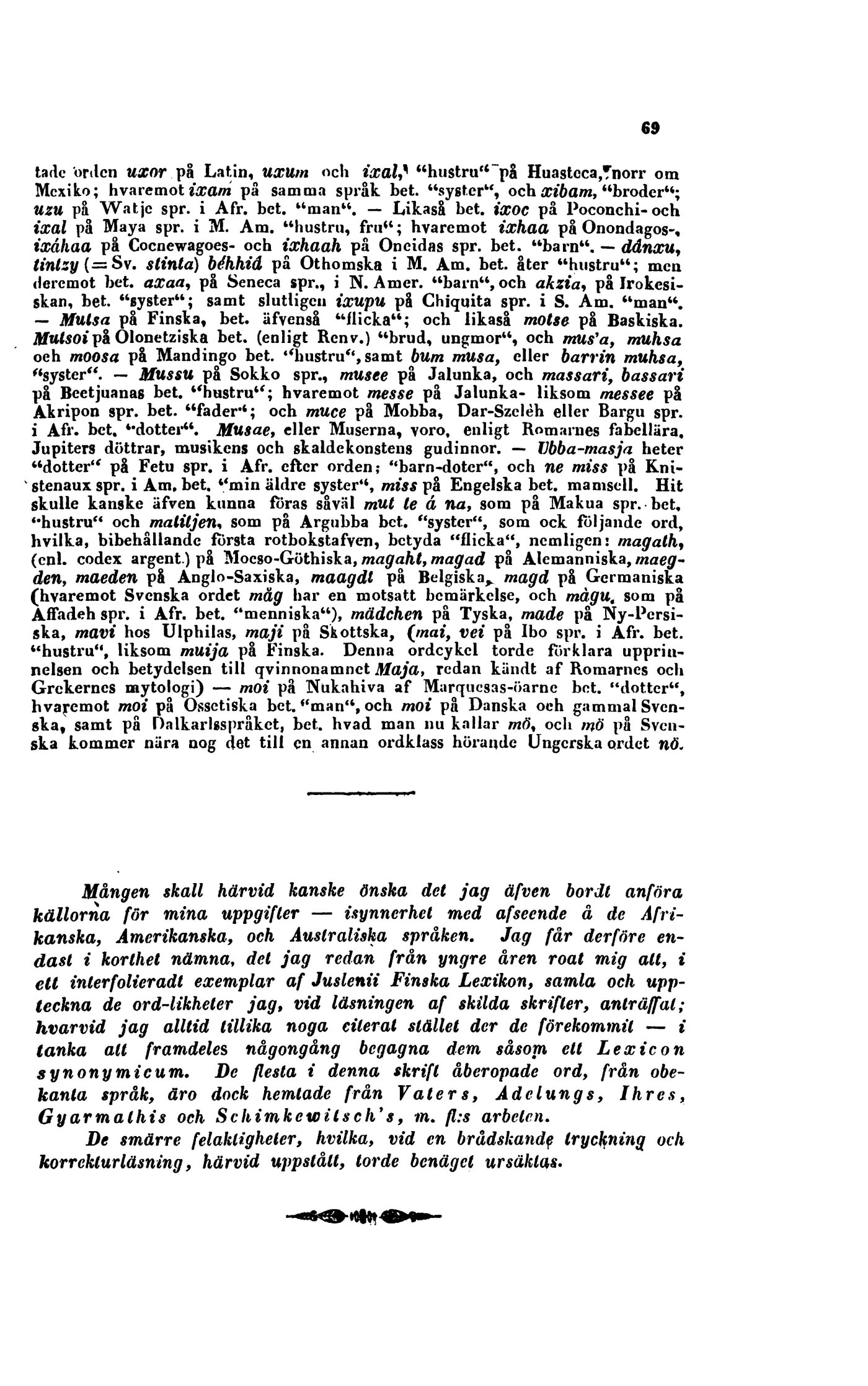 “hustru" och matitjen, som på Argubba bet. "syster", som ock följande ord,