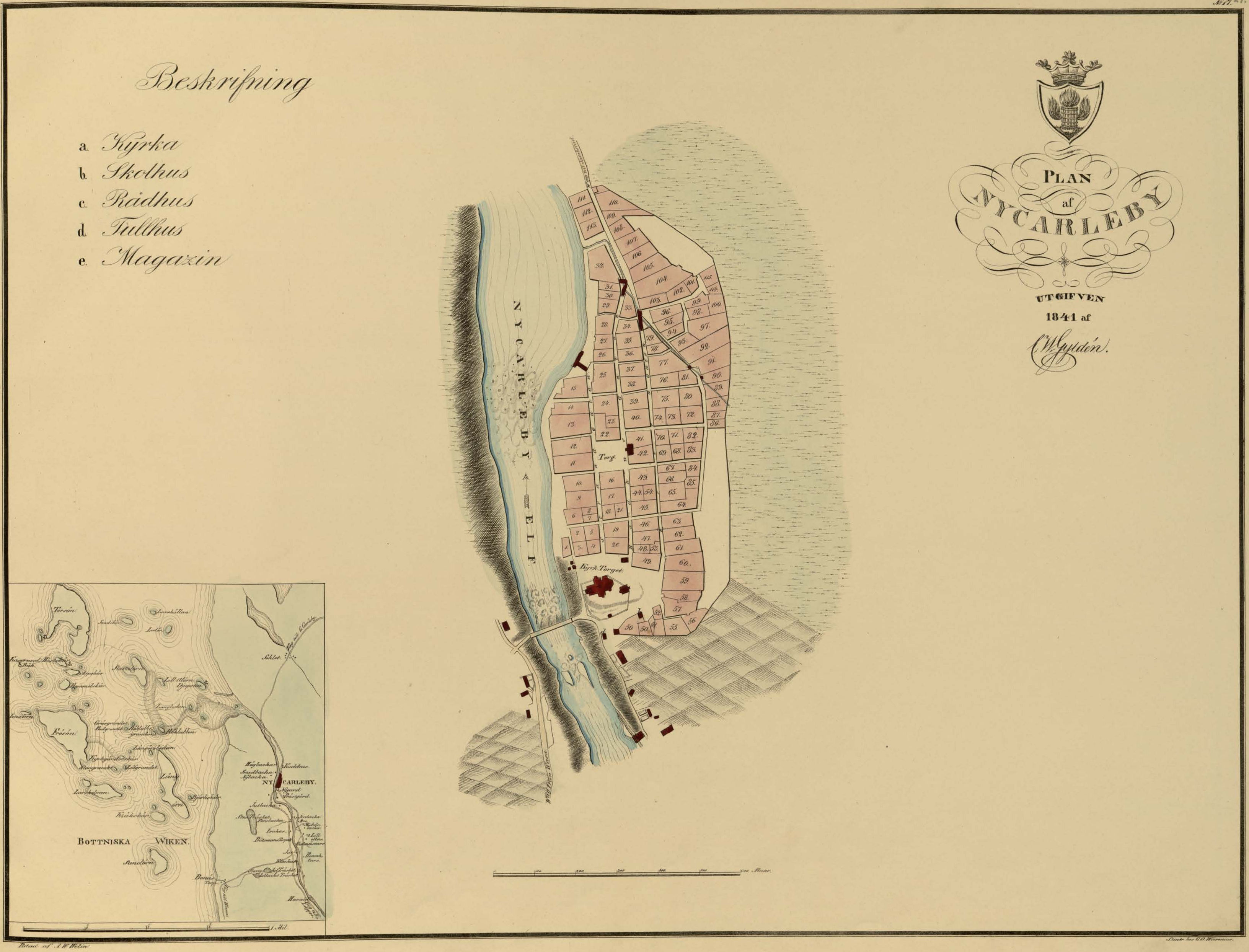 Ritad af A. W. Welin. Stentryck hos G. O. Wasenius. Plan af NYCARLEBY UTGIFVEN 1841 af C. W. Gyldén. |