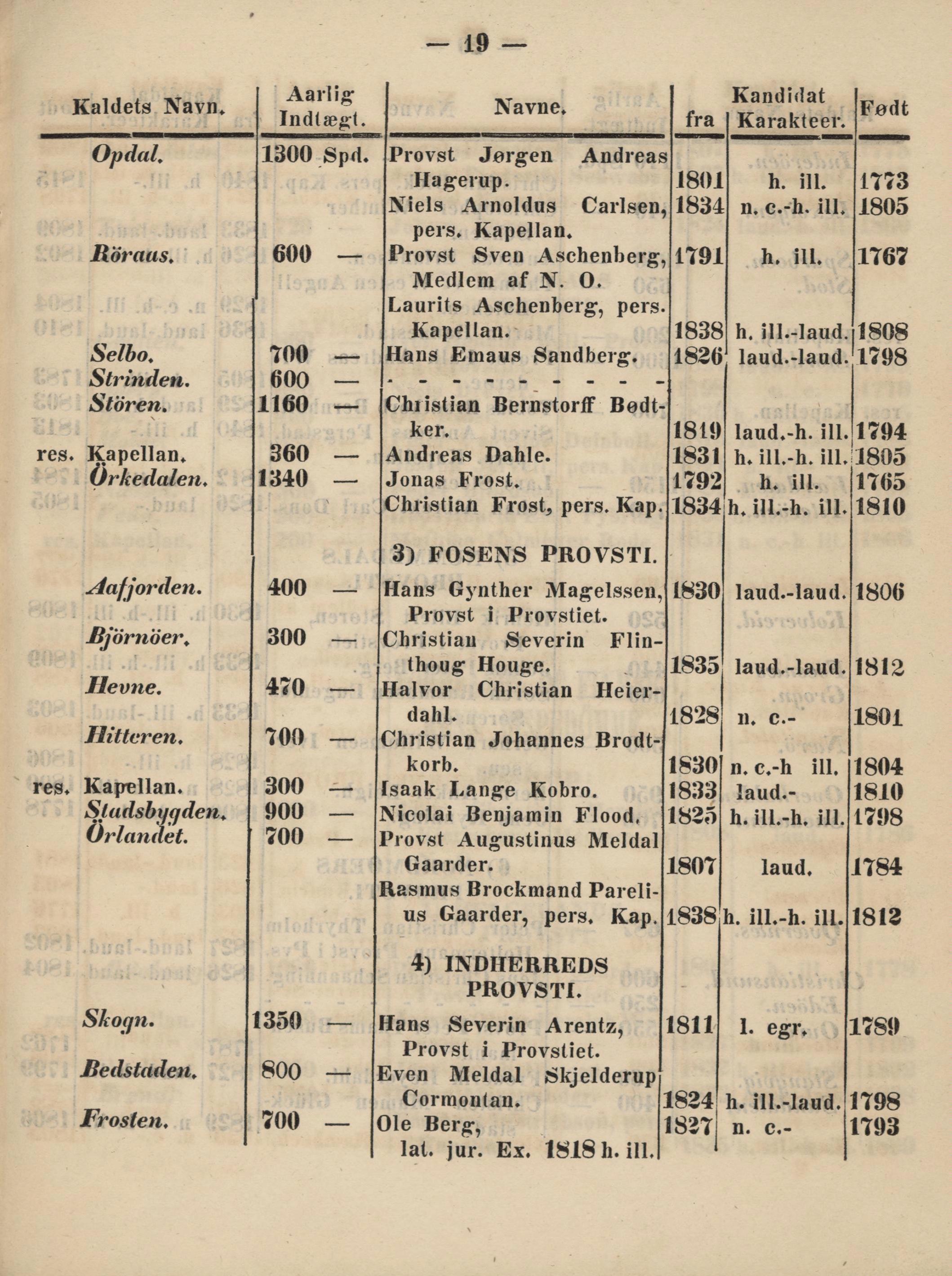 Kaldets Navn. Aarlig Indtægt. Navne. fra Kandidat Karakteer. Født