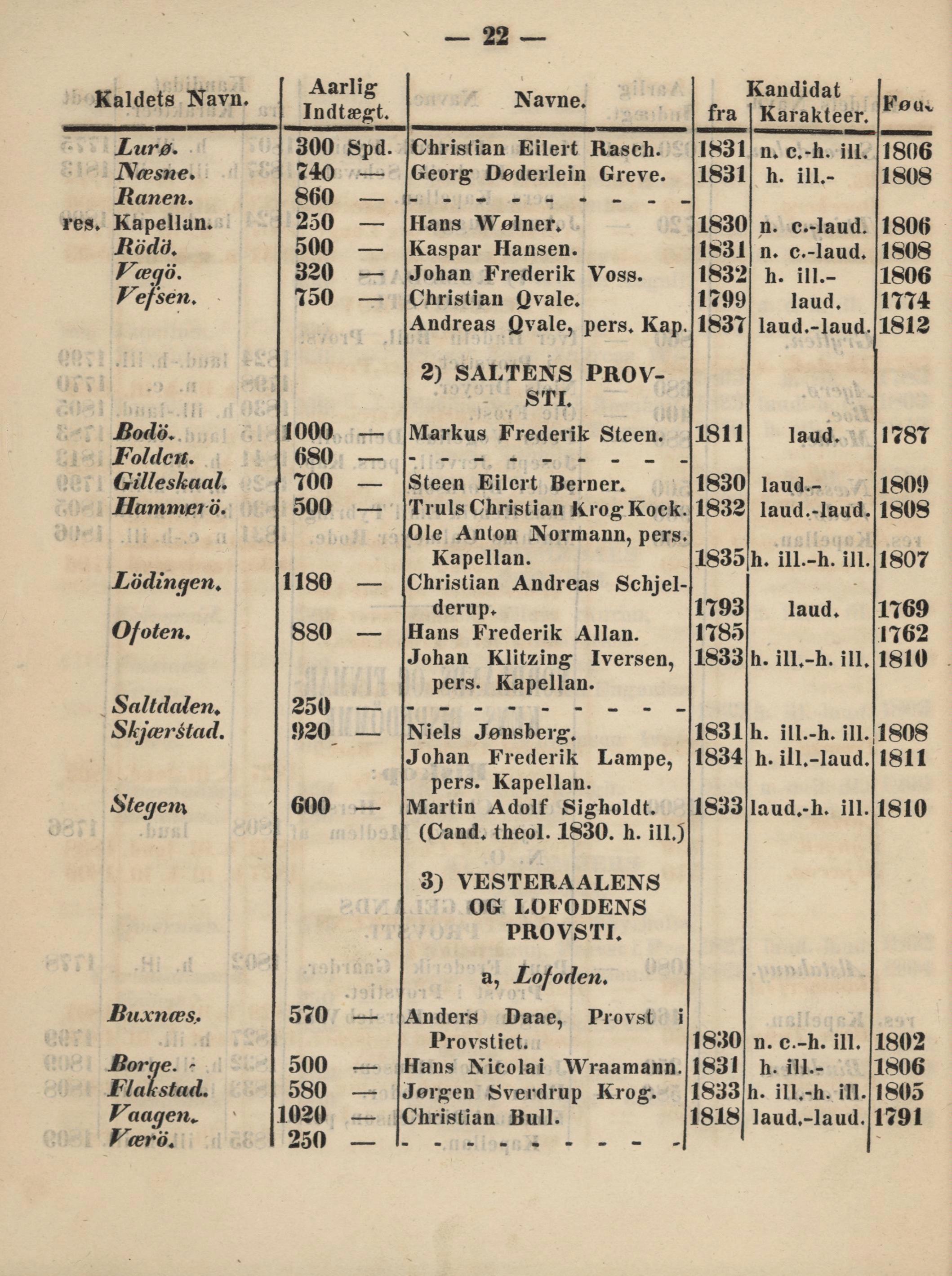 Kaldets Navn. Aarlig Indtægt. Navne. fra Kandidat Karakteer. Føiu