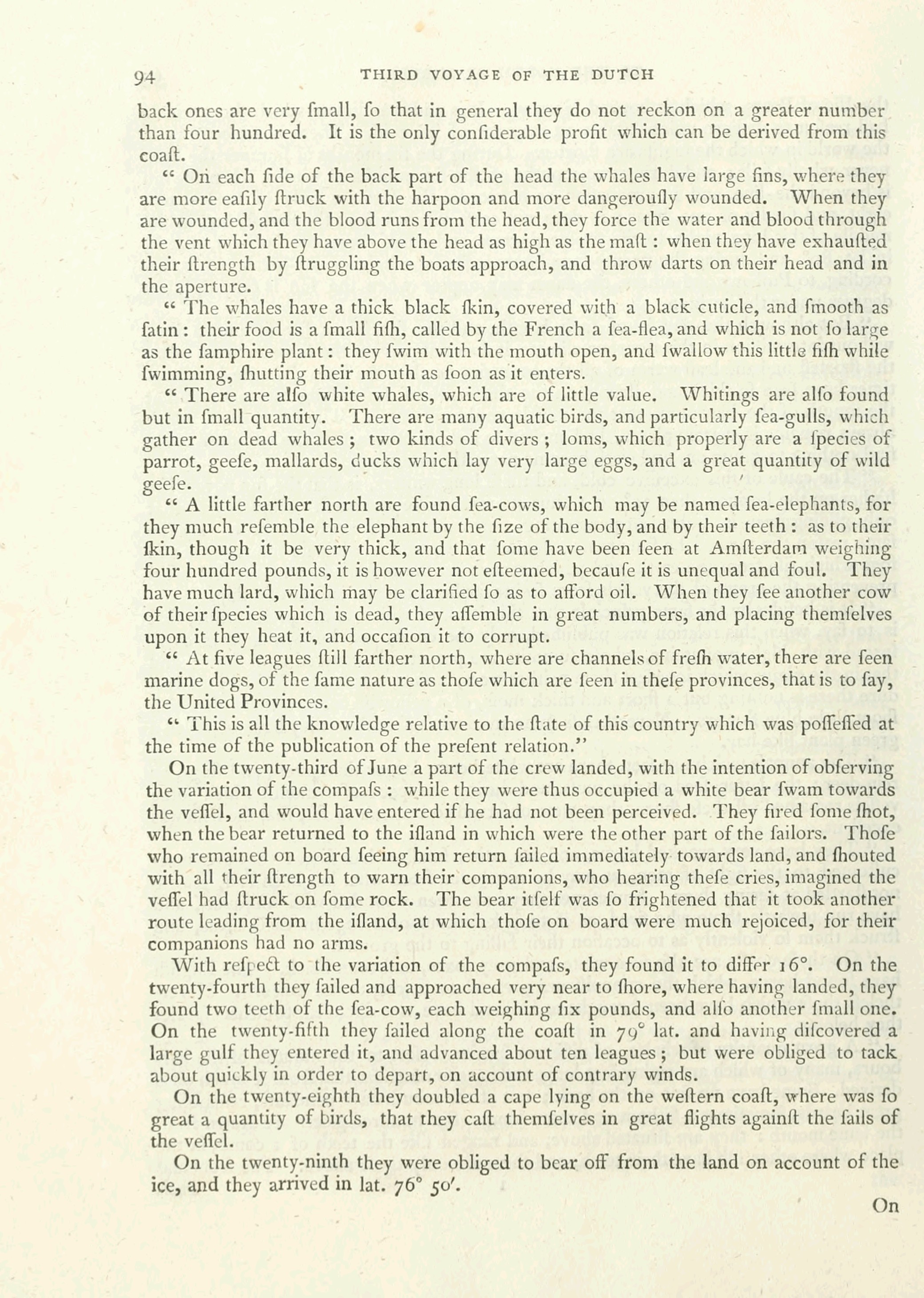 On the twenty-fifth they failed along the coaft in 79° lat. and having difcovered a