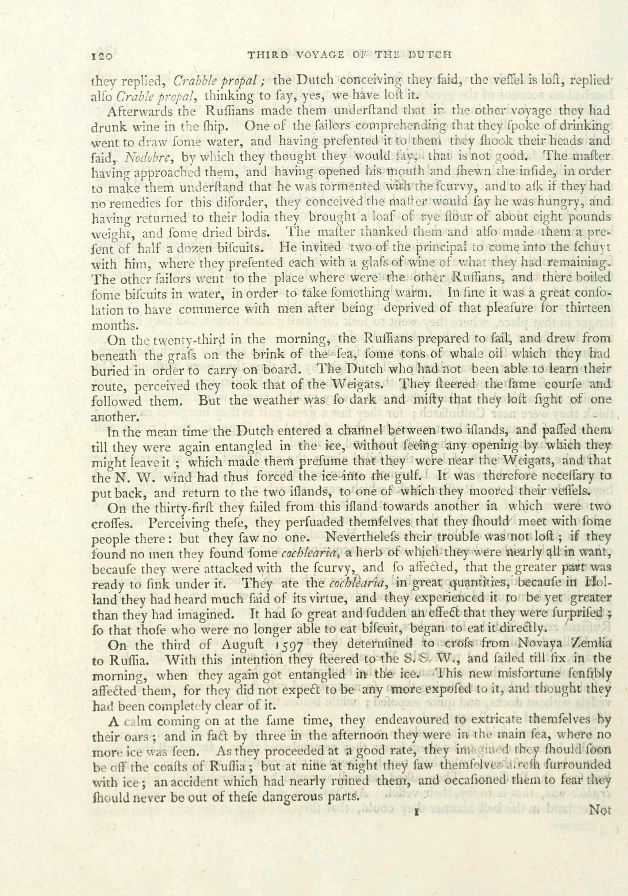 found no men they found fome cochlearia, a herb of which: they were nearly allin want,